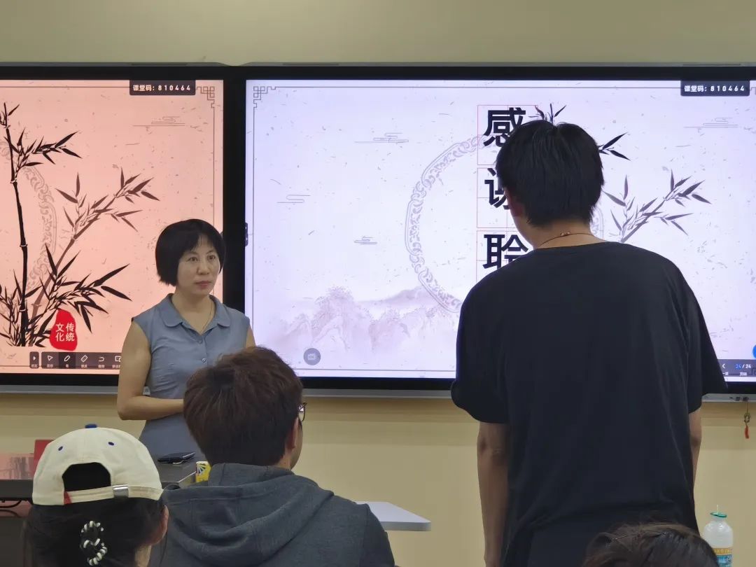 本次课堂,分为两个环节。在1比1示范课中,李黎俊老师通过领读单词、随堂练习、观看视频等多种教学方式带领同学们体验了一堂充满趣味的“篮球课”。在课程设计培训环节,李老师针对说课的教材和目标、学生、教法和学法、教学过程、板书这五方面进行了细致的讲解,课堂气氛活跃,参训学员踊跃与李老师进行提问互动。在解答过程中,李老师强调说课时要提前预习,做好充分的准备,要结合实际情况,给出指令性的语言,保证课堂氛围良好。李老师的解答和建议,让同学们都得到了不同的收获。