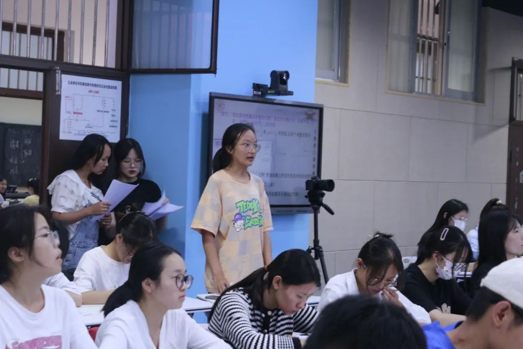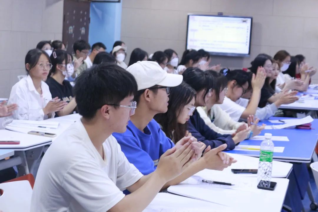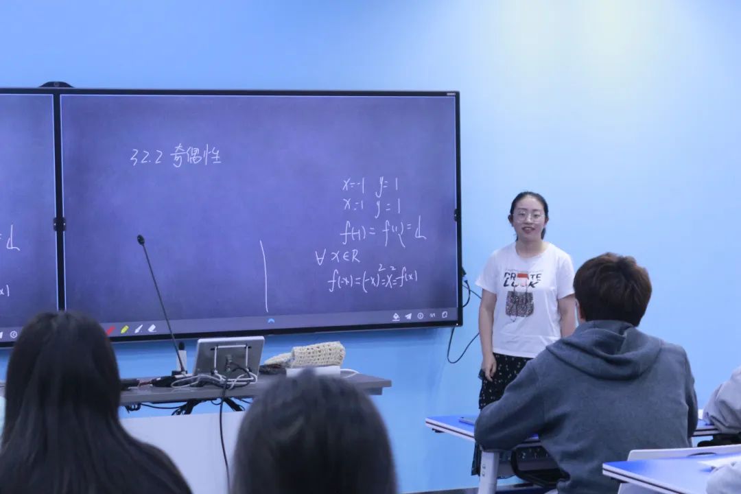 戴老师从身边事物的对称性联系到函数的对称性,引出重点:函数的奇偶性,加上提问回答和例题实操,通过深入浅出的方式,让同学们更好地掌握了函数的奇偶性这一知识点。在课程设计培训环节,戴老师分享了自身的教学经验,结合实际为师范生们提出了许多宝贵的意见并强调要“理解数学、理解学生、理解教学、理解技术”。对于同学们的问题和不懂的地方,戴老师也做出积极回应,帮助同学们解决,在这样融洽的课堂气氛中,最后的提问互动环节也结束了。