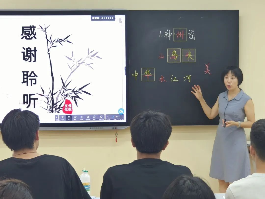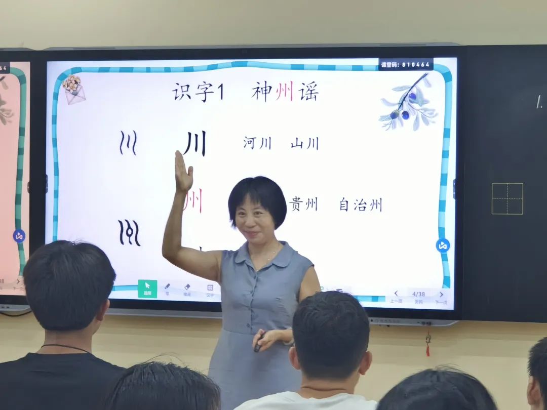 本次培训主要包括1比1示范课、课程设计和现场问题三个环节。在第一环节,岳老师通过提问、互答、童谣等多种形式,为参训学员带来一堂精彩的识字课,整个课程内容图文并茂、丰富多彩,课堂氛围轻松愉悦。在课程设计环节,岳老师主要围绕从教学目标到如何调起学生课堂积极性进行了详细讲解,事例丰富、讲述生动,有效地带领参训学员深刻了解了教学方式。