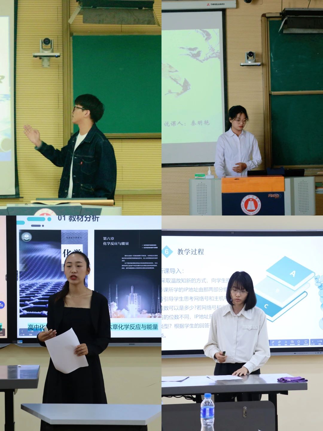 第一个环节主要考察参赛选手理论素养、驾驭教材的能力和语言表达能力。每位参赛选手根据所选学科和时段准备8分钟以内的说课稿,参赛选手以语言为主要工具,向评委老师阐述自己对教学内容的理解、施教方案的设计以及施教效果的预测与反思等,从说教材、说教法、说过程等充分展现了未来教师扎实的教学基本功。