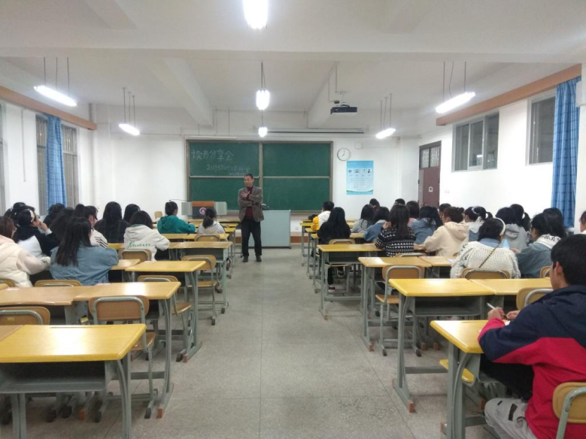 郭建明同志作了动员讲话,他详细阐述了举办读书分享会的重大意义和主要目的。同时他提出了四点要求:一是各班要高度重视,班主任要统筹好班风学风建设,各班委要大力协助完成好此项任务;二是各班要分组进行,不搞形式主义,真正做到学有所得、学以致用;三是各班要严格要求,不能照搬照抄,不能照稿子念,从而真学真练;四是各班主任要加强监督指导,不能走走形式、乱搞一通,同时学院要不定期抽查,强化监督。大家按照活动方案中读书分享会的流程“分享-自评-他人点评-复讲”来开展活动,学院领导和各班主任全程进行指导和示范。