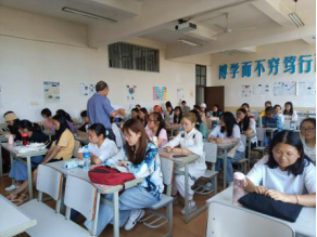 团课伊始,郭书记结合自身实际求学经历,以幽默风趣的语言向大家讲授了学习语言的方法及意义。他提到:语言都是有生命的,我们要带着敬畏之心学习语言、了解语言,做到学以致用,用有所益。此外,郭老师也倡导我院青年学生与时代同行,做到多学科学习和学科交融,最终达到学科转型升级的目的。