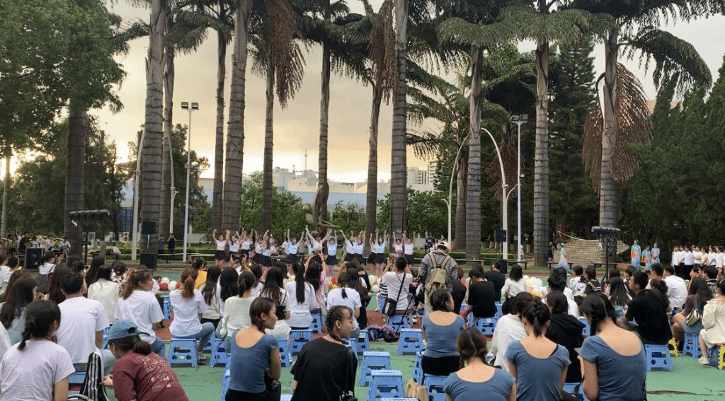 在阳光余晖里,来宾纷纷落座。晚霞高挂天空,舞姿摇曳映入眼帘,在主持人银铃爽朗的声音中,一个个节目经过一个多月的精心准备后有序上演。开场舞《Yes,ok!》将激情活泼充满活力的气氛带入现场,让观众感受到青春的朝气蓬勃向上;