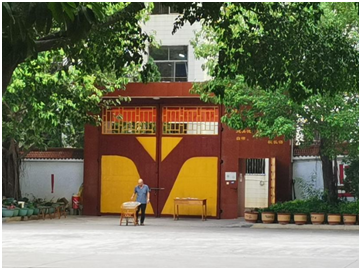 怕打扰学生上课,我们没有走进教学楼,只在校园里安静的转了一圈,最让我感到惊讶的是这校园的每个角落竟是如此干净整洁,地面墙体一尘不染、花朵绿植也装饰的错落有致。于是心里默默猜想着张桂梅定是一位精致又严厉的校长。前行至宿舍楼,再往右转,便是女高的操场。在操场下面看,“共产党人顶天立地代代相传”十二个红色大字格外醒目。