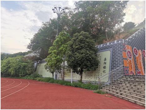 在操场上面看,两旁的围墙上贴满了各种高考的古诗词,让学生在体育锻炼的时候,目之所及,全是知识。一下子让我想到《觉醒年代》里,毛泽东在《新青年》上发表的体育精神实质在于:“文明其精神,野蛮其体魄”。精神与体育塑造并举,才会是最完美的收获。