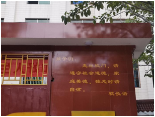 出校门前,看见学校大门右上角一个不显眼的位置,贴着校长语“孩子们:走出校门,请遵守社会道德,家庭美德,独处时请自律”。看见这几行字,我不禁肃然起敬。这一所山脚下的女子中学,教授给姑娘们的不仅仅是改变命运的知识,更是走向社会后安身立命的做人美德……