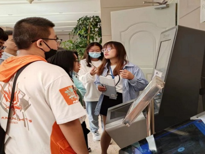 上午10:00,活动正式开始,由志愿服务者有序带领同学们前往培训地点就坐。志愿者给新生介绍了图书馆的功能和图书馆借阅的注意事项、相关规章制度以及电子资源的使用等,并对借还书的流程进行示范,现场指导同学借阅图书。
