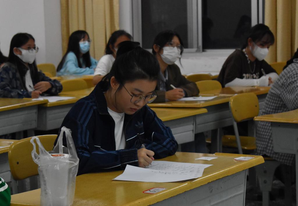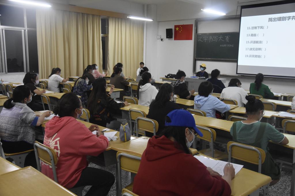 据悉,本次推普周系列活动于9月14日至16日开展,为创建良好的语言文字环境,商学院团委事先向全校同学征集了推普标语,进一步渲染了推普氛围,汉字书写大赛于9月14日19:00在13教310和311举行,参赛选手随机抽取座位号并进入考场,根据PPT展示的题目,在试卷上书写答案。比赛过程中,选手们落笔轻重有序、结构疏密有致,令人赞叹。