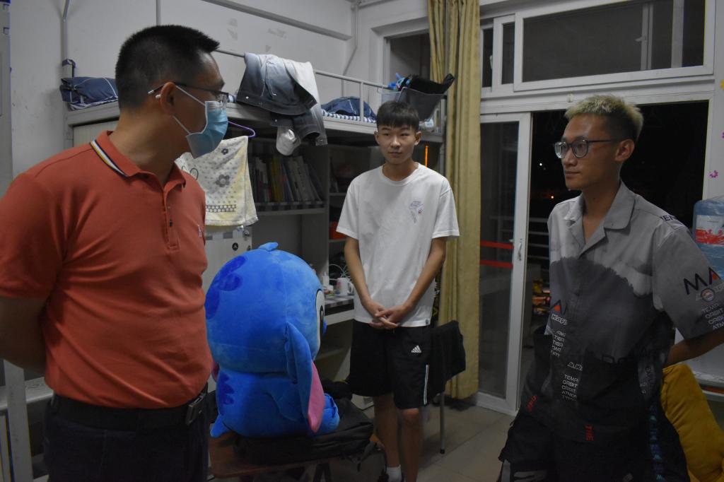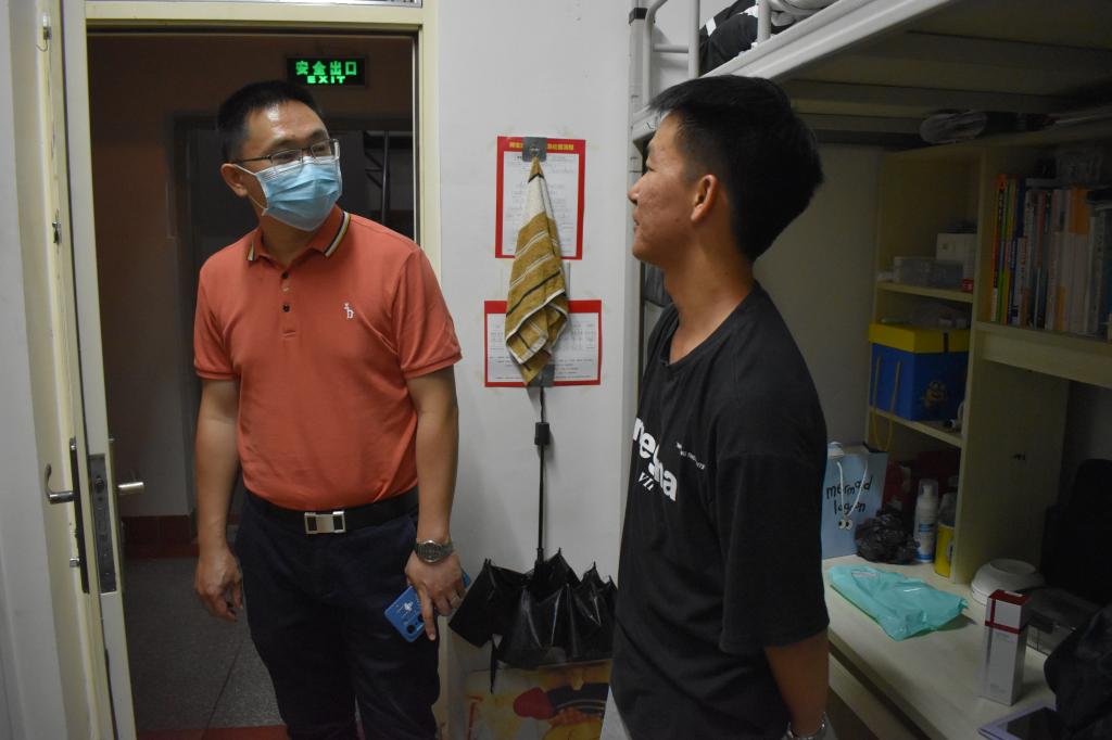 为帮助学生尽快从暑假生活回归适应校园生活,关注同学们在疫情防控常态化形势下的心理健康,2022年8月27日21:00,玉溪师范学院商学院党委书记罗辉、党委副书记姜芹春、商学院团委学生会团干一同走访了男生宿舍F栋,对商学院同学们进行了亲切慰问。