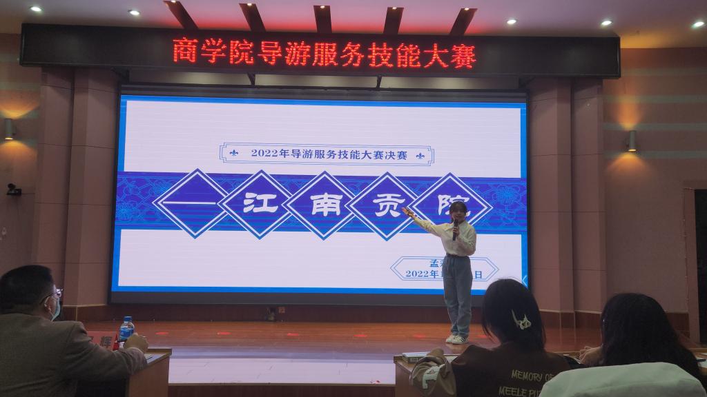 为活跃校园文化,普及旅游知识,培养优秀大学生导游员,2022年10月24日晚上7时,由商学院导游协会举办的第十四届导游服务技能大赛决赛在玉溪师范学院科学讲堂拉开帷幕。此次导游大赛由商学院党委书记罗辉老师、党委副书记姜芹春老师、辅导员杨加堂老师、导游协会指导教师唐玲萍老师、孟丽老师担任评委。
