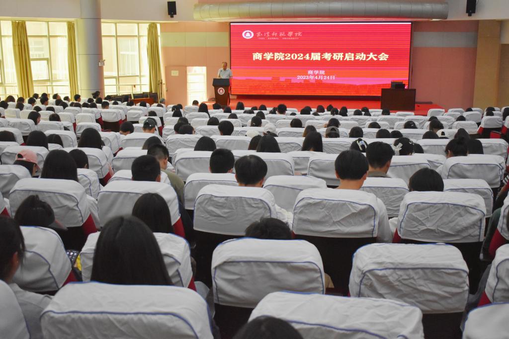 为加强年级学风建设,进一步调动学生考研积极性,树立目标,增强信心2023年4月24日15:00商学院于图书馆学术报告厅举行2024届考研启动大会,大会邀请了商学院院长李崇科老师、副院长马小宁老师、罗雅岚老师进行指导,此次活动由马艳琼老师主持,系主任、辅导员、2020级各班班主任出席,2020、2021、2022级同学积极参与。