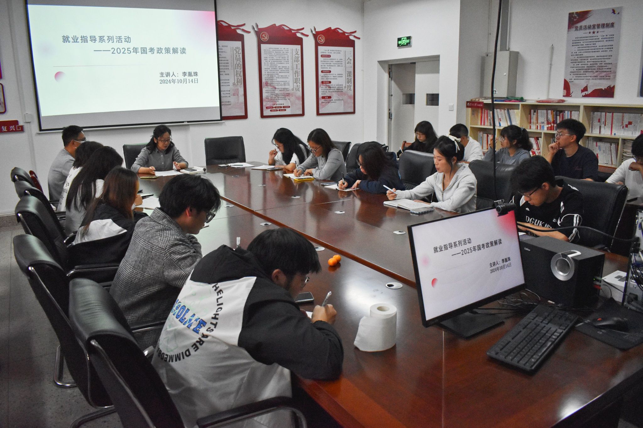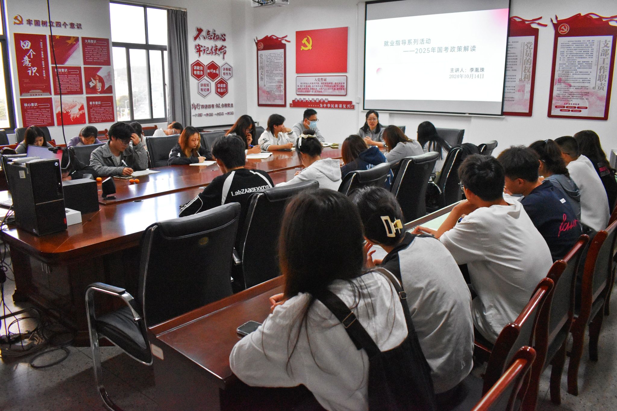 为了帮助同学们更好地准备2025年国家公务员考试,学院为此提供了就业指导服务,切实落实推进就业相关工作。玉溪师范学院商学院于2024年10月14日18:00在实训大楼601开展就业指导系列培训活动,本次活动由商学院青年讲师团李胤珠老师主持。
