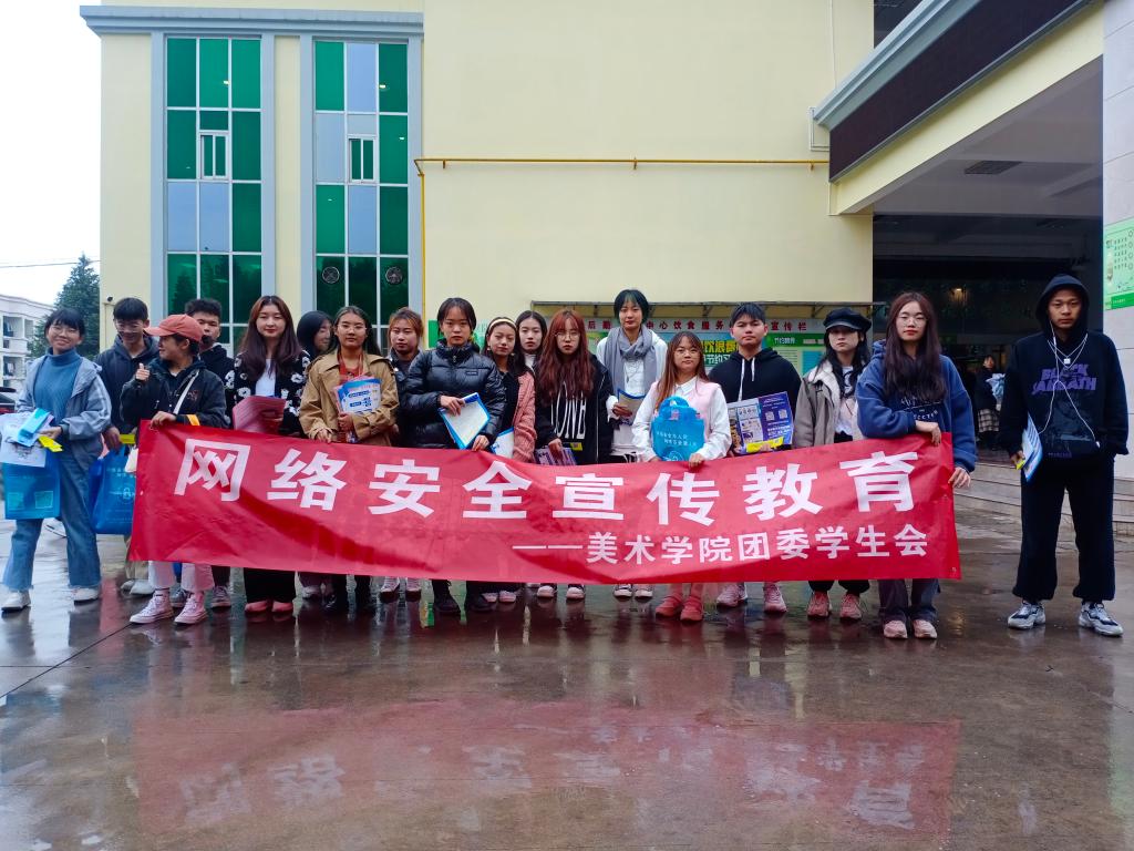 美术学院团委学生会各部门分别在滋味苑、品味苑等学生多聚集的地方以分发网络安全手册、宣传单的方式提醒同学们预防电信网络诈骗,营造网络安全人人有责,人人参与的良好氛围。网络并非法外之地,网络安全的维护需要大家的共同努力,享受网络高度发展的成果和提供的便利同时,应遵守网络安全的法律法规,远离侵害网络安全的各类违法行为,共建网络安全,共享网络文明。普及网安知识,繁荣精神家园,让打造网络安全成为公民的责任。
