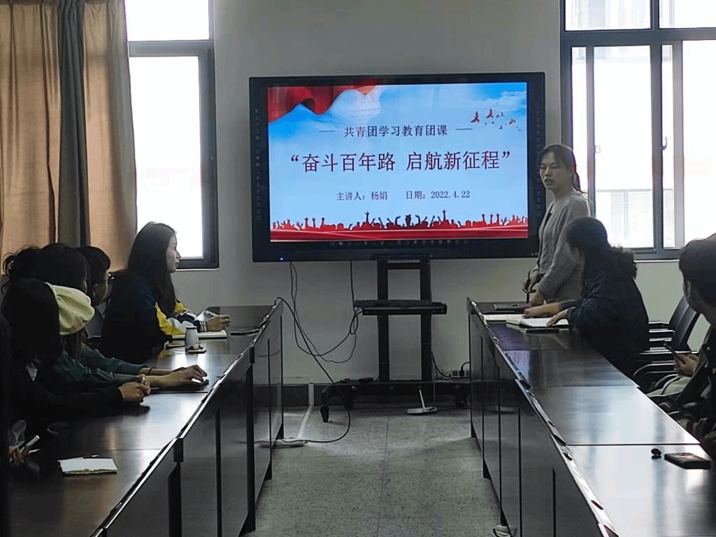 为帮助同学们进一步认识中国共产党成立百年来的光荣历史成就,加强青年团员意识教育,激励广大青年学生“高举团旗永远跟党走”,2022年4月22日,美术学院团委书记杨娟在美术学院会议室为美术学院学生干部上“奋斗百年路,启航新征程”主题团课,美术学院团委学生会全体成员参加。