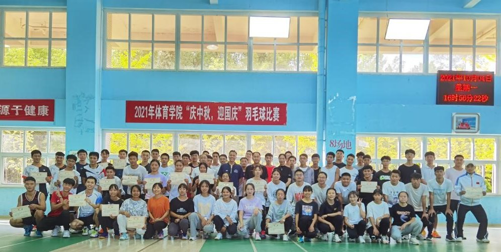 2021年10月4日下午16:30,玉溪师范学院体育学院“庆中秋,迎国庆”羽毛球比赛在羽毛球馆圆满落下帷幕。出席本次颁奖仪式的领导嘉宾有:体育学院党委书记杨志龙老师、体育学院党委副书记董丽波老师、体育学院副院长雷小明老师、体育学院辅导员吕刚老师、体育学院辅导员董诗稳老师。