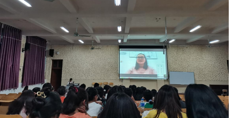 活动开始,石老师向同学们讲述了自己的语言学习及教学经历。其后,石老师借用第二课堂提升英语能力的实例引出了第二语言习得理论,并具体介绍了学习第二外语的方法与策略。最后,石老师分享了往届优秀学长学姐们的录制视频,以此激励大家坚持不懈,积极进取。