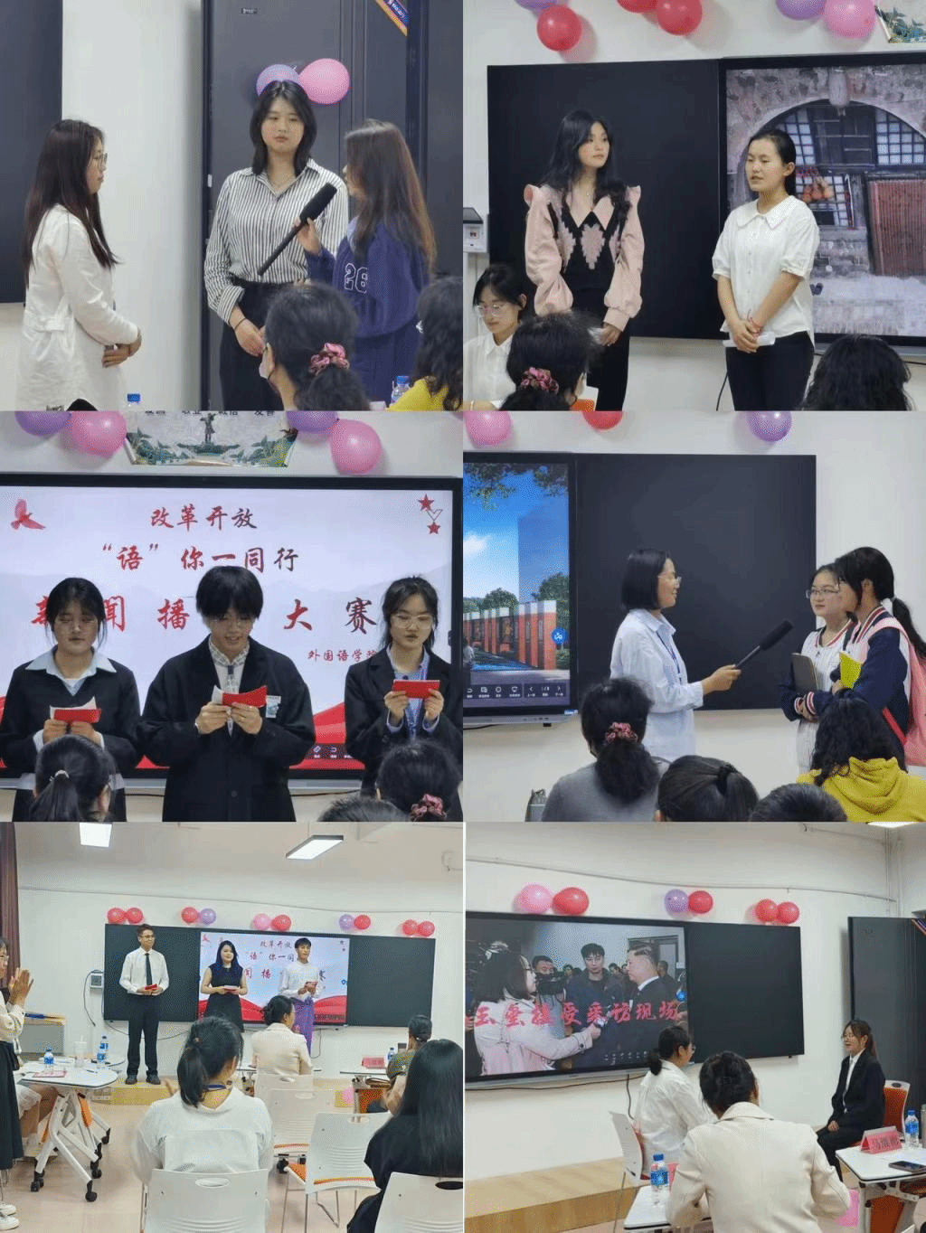 外国语学院于2023年4月16日19:00在二教104和110教室举办了以“改革开放重大成就及杰出贡献人物”为主题的“语”你同行-外语新闻播报大赛。