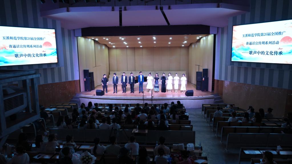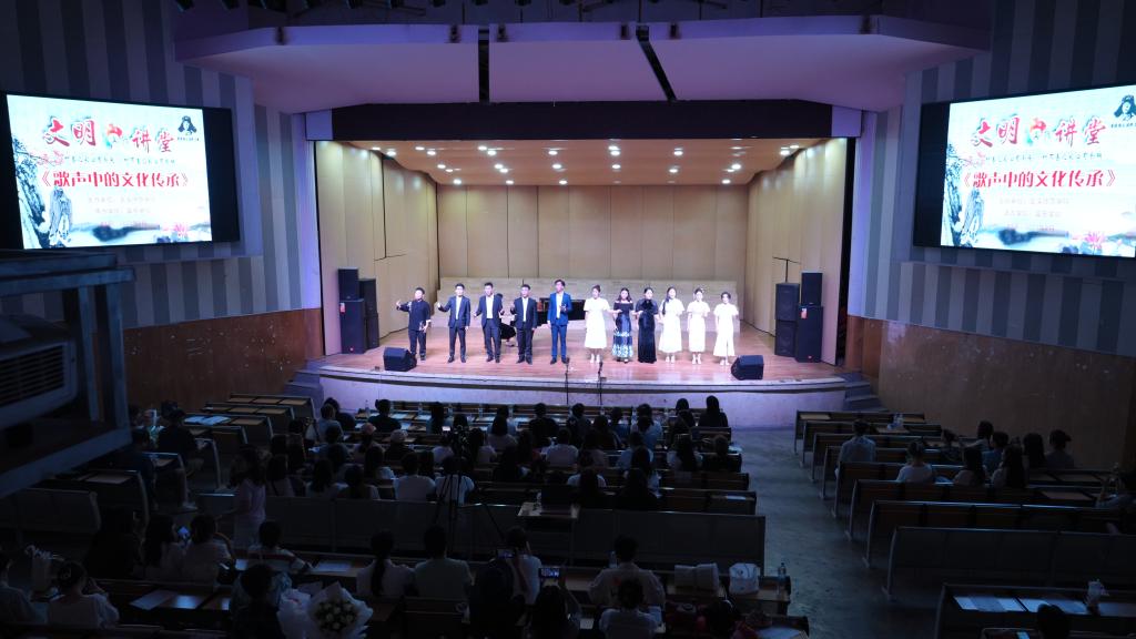 2023年9月7日,玉溪师范学院文明讲堂——“歌声中的文化传承”中国古诗词传唱专场思政课在聂耳演艺厅举行,本次活动也是我校第26届全国推广普通话宣传周系列活动之一。本次活动是认真贯彻落实习近平总书记在文化传承发展座谈会中的发言精神,将马克思主义基本原理同中国具体实际、同中华优秀传统文化相结合的具体实践,活动由音乐学院承办。