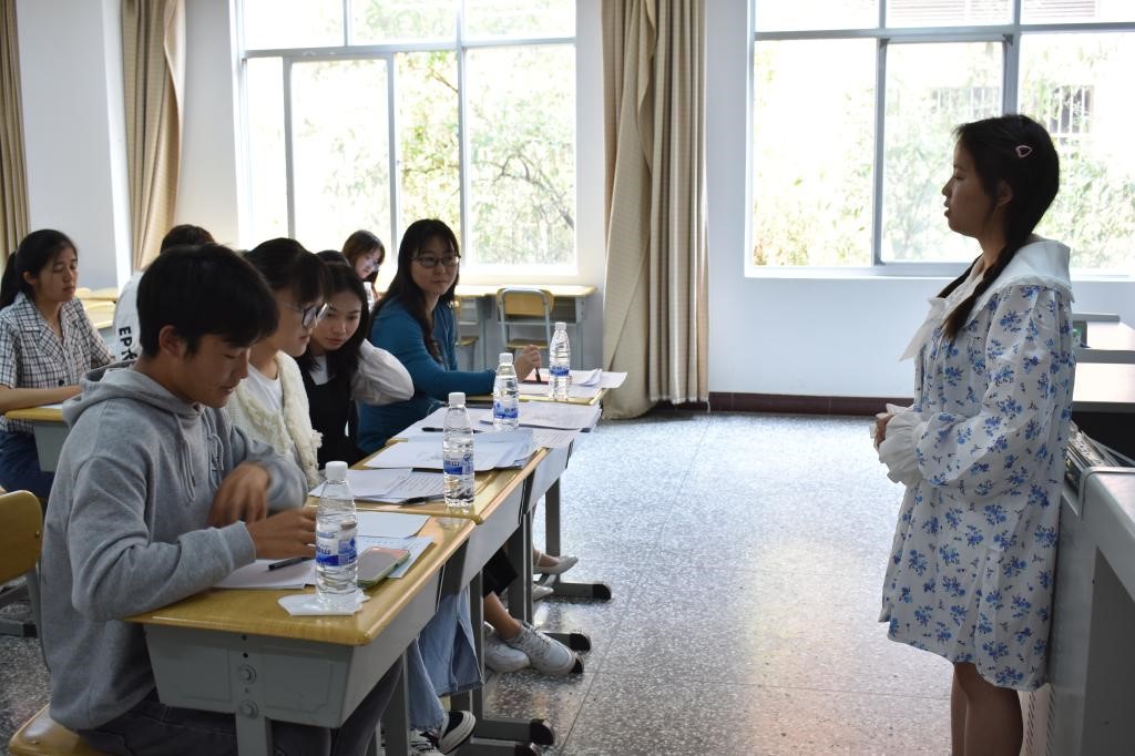 4月30日9:00,我校师范专业、非师范专业共计35名同学参加本次大赛,授课科目多样。参赛选手提前一天抽签决定讲课的顺序,6人一组提前在候考室等待。大赛现场,师范专业的同学进行了说课比拼,非师范专业的同学进行讲课比拼。每一位参赛选手都赛出了自己的风格和特色。最后,评委们对参赛选手们的表现打分,丁培水、李书林、王家银、孙萍豆四名同学进入复赛。