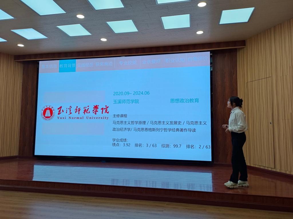 本次比赛分为未来组和真实组,首先进行的是模拟求职大赛。比赛过程中,选手以自信的姿态和流利的语言介绍了自己的兴趣爱好、价值倾向、学业荣誉、社会经验,评委老师高度赞扬了参赛选手的精彩表现,并就同学们的语言表达、思维逻辑、简历排版、材料准备和就业观念等方面给予了宝贵的建议。随后进行的是简历设计大赛,各位参赛选手精心准备,分别从个人信息、教育背景、校园经历、特长技能等方面展示自己的简历,评委老师对参赛作品进行了指导和评比。最终,杨艳同学获得模拟求职大赛和简历设计大赛真实组一等奖,方媛同学获得简历设计大赛未来组一等奖。