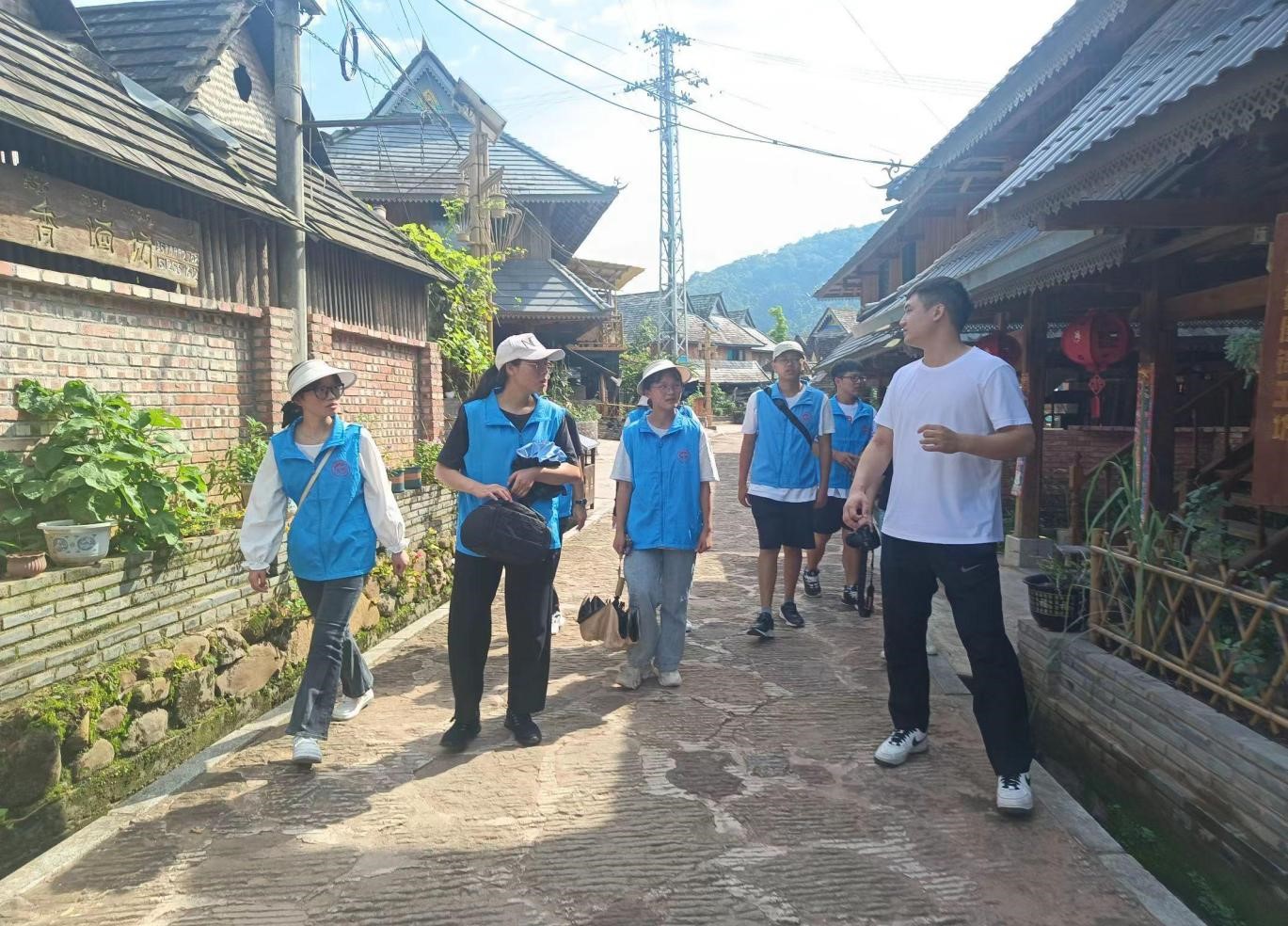 “绿水青山就是金山银山”,为推进生态文明治理实践,保护生物多样性,感悟整董镇在做好团结家园的绿色守护者方面取得的成效。宣讲团成员同普洱学院实践团的成员进行了一次有意义的联动,两校同学在当地工作人员的带领下,一起参观了有着“全国生态文化村”之称的漫滩村。通过了解漫滩村基本概况特别是当地的城乡绿美建设成果和传统村落古建筑保护情况,结合自己的专业知识,为乡村振兴建言献策。