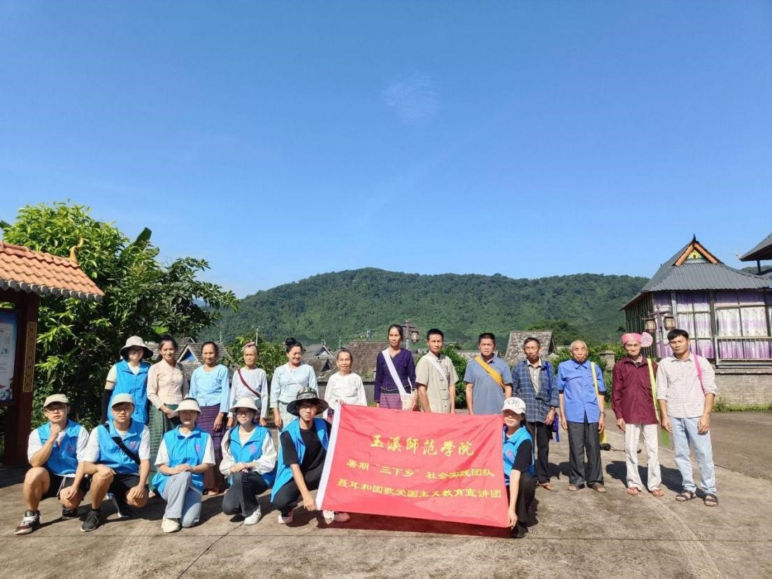 为全面贯彻全国语言文字会议精神,实施服务乡村振兴战略,以实际行动传承红色基因, 勇担青春使命,贡献玉师学子的力量。2023年7月16日至19日,玉溪师范学院马克思主义学院8名学生组成的聂耳和国歌爱国主义教育宣讲实践团在指导教师带领下到达“一城连三国”的普洱市江城县开展了以“国歌唱响国境线——红色文化助推普”为主题的红色推普实践活动。