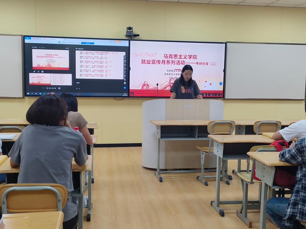 为提高我院学生考研积极性,帮助同学们了解考研信息及相关流程,4月14日下午15:30,马克思主义学院举办了考研经验分享会,本次活动邀请了2019级6位考研优秀毕业生为同学们做经验分享,2020级意向考研的同学积极参加。