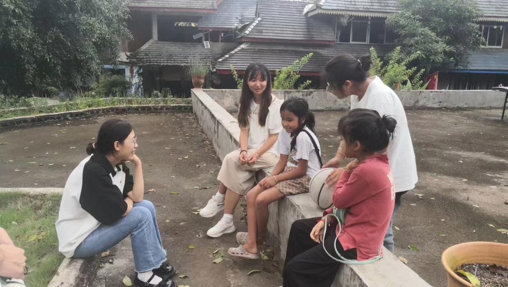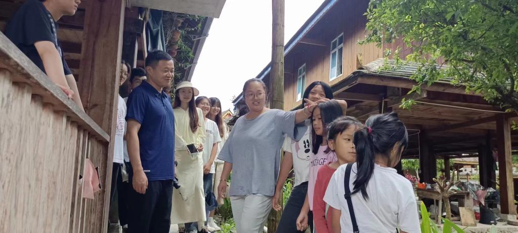 当晚在当地社工服务中心负责人的引导下,实践团和寨子里的小朋友们进行了初步交谈,孩子们热情地回答了实践团的问题,并且带领实践团游览了村寨,耐心地为实践团成员进行讲解和指引。