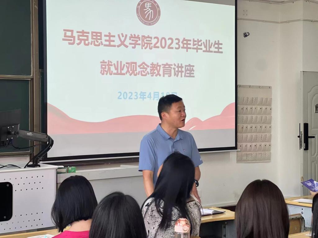 为进一步推动就业指导工作有效开展,帮助毕业生了解就业形势、转变就业观念、提升就业能力,2023年4月18日,我院在11教105室开展了马克思主义学院2023年毕业生就业观念教育讲座。本次讲座由马克思主义学院党委副书记李铁担任主讲,2019级全体毕业生共同参与。