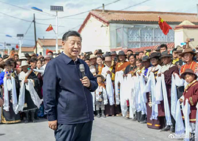 【为什么老百姓衷心拥护党?因为我们党始终全心全意为人民服务、为各民族谋幸福】8日下午,习近平总书记来到海北藏族自治州刚察县沙柳河镇果洛藏贡麻村,走进牧民索南才让家中,看望慰问藏族群众。索南才让说,牧民生活好,全靠党的政策好,衷心感谢党、衷心感谢总书记。习近平指出,我们党成立一百年了,为什么老百姓衷心拥护中国共产党?因为我们党始终全心全意为人民服务、为各民族谋幸福。我们一百年来取得的成绩,赢得了民心,在建设社会主义现代化国家新征程上,我们要走得更好。