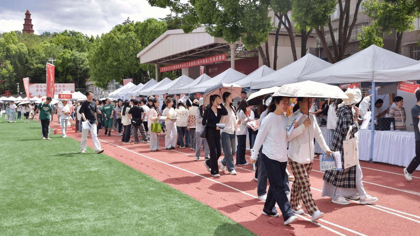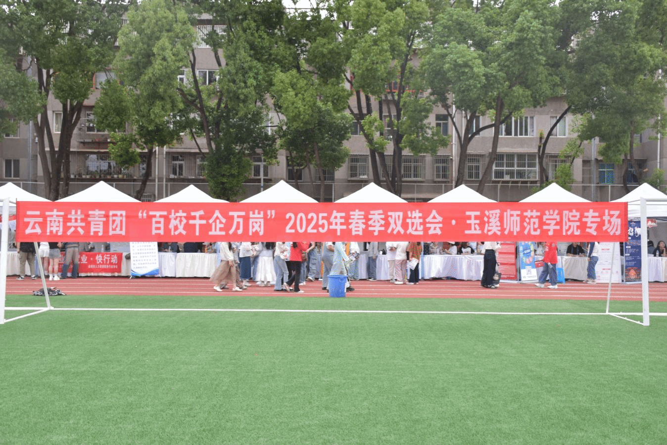 为贯彻落实习近平总书记关于做好高校毕业生就业工作的重要指示精神,积极搭建2025届毕业生与用人单位双向选择的对接平台,扎实做好毕业生就业服务工作,促进毕业生更充分更高质量就业,2025年4月17日,由玉溪师范学院团委、就业指导中心联合举办的云南共青团“百校千企万岗”2025年秋季双选会·玉溪师范学院专场在学校足球场举行。