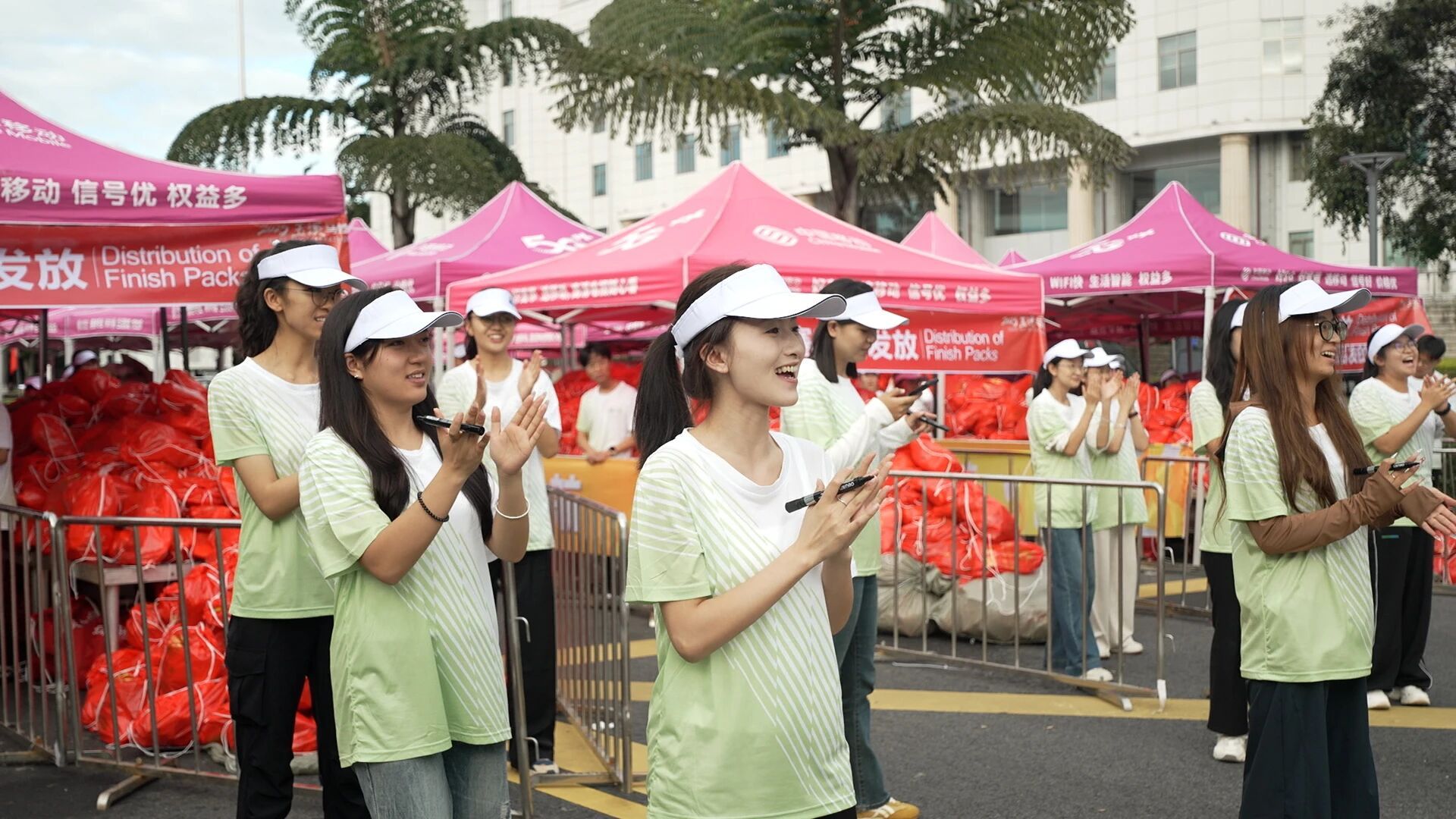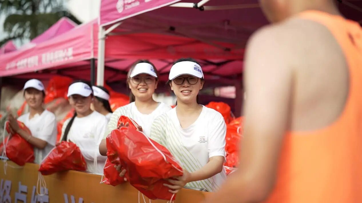 递上饮用水、完赛物资与奖牌