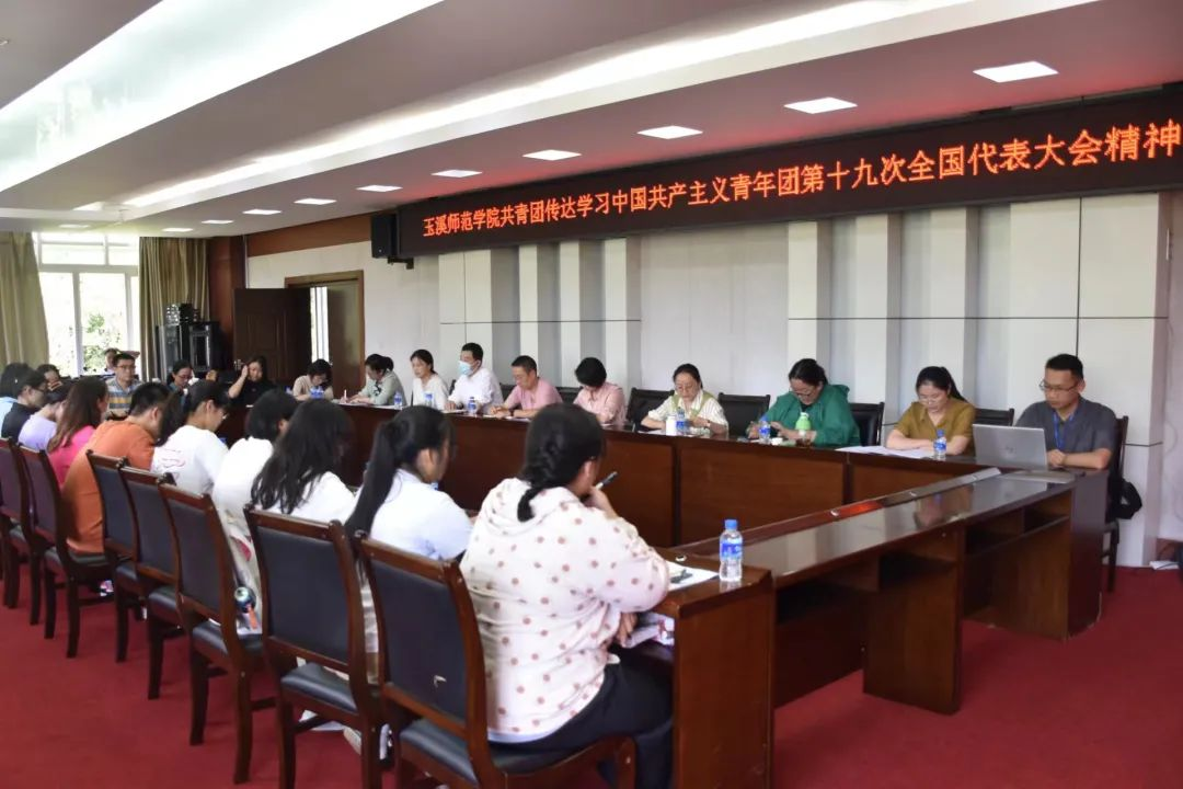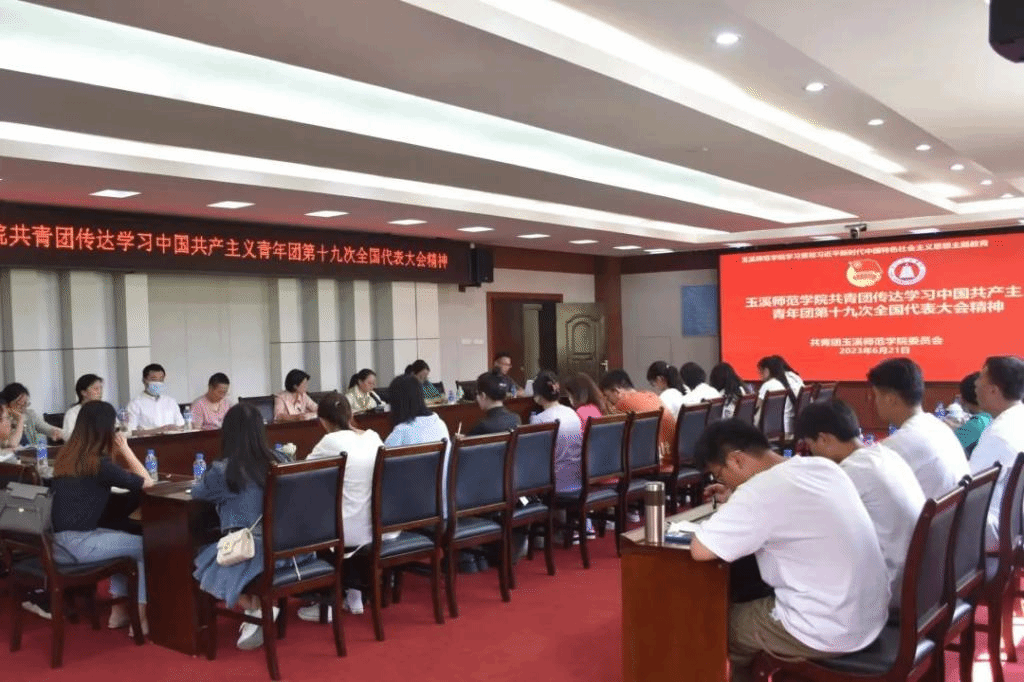 为认真学习贯彻中国共产主义青年团第十九次全国代表大会精神,玉溪师范学院团委于6月21日召开专题学习会,组织全校各级团组织、团干部、团员青年和青马工程校级“菁英班”学员代表及时传达学习中国共产主义青年团第十九次全国代表大会精神。