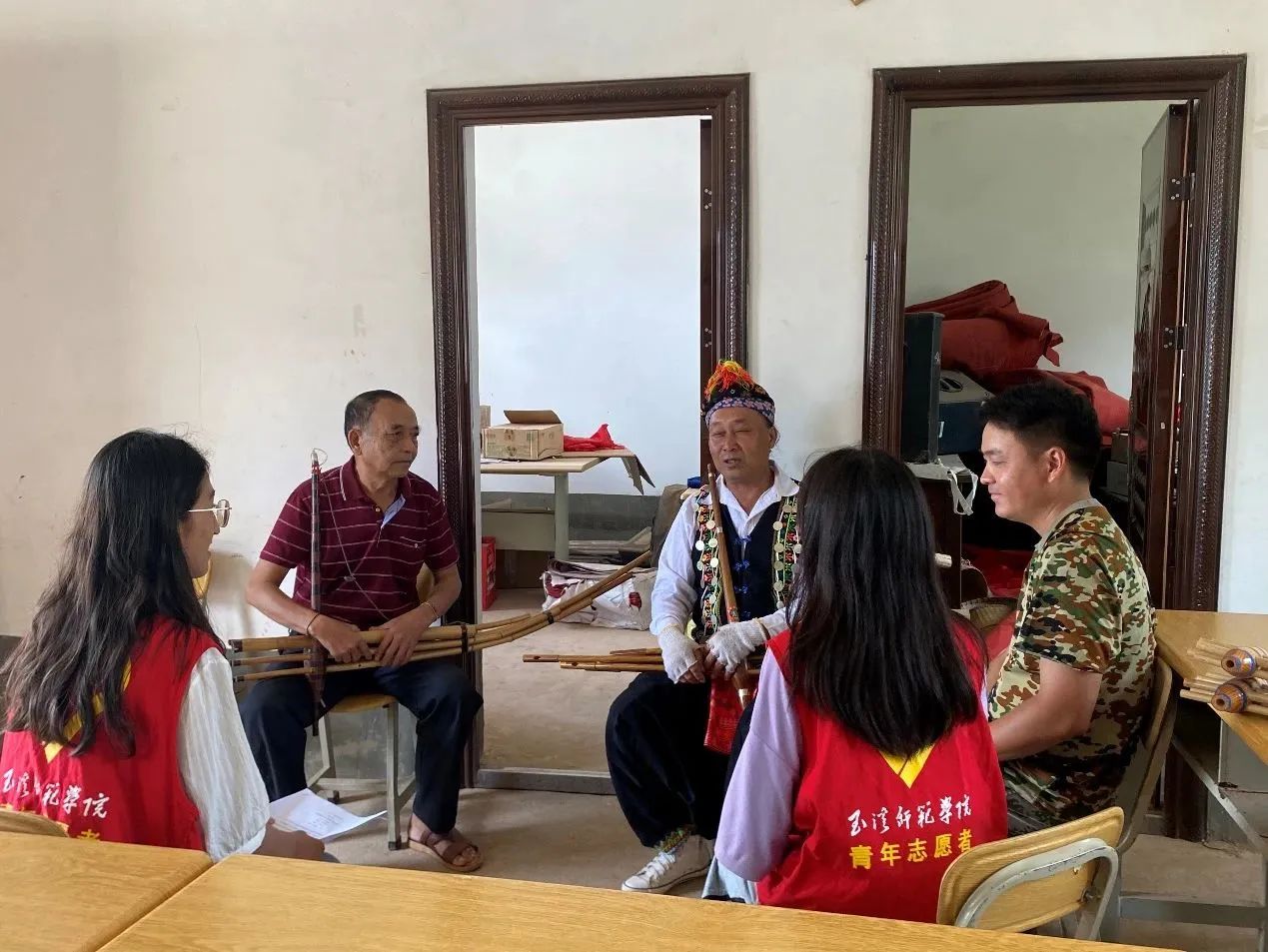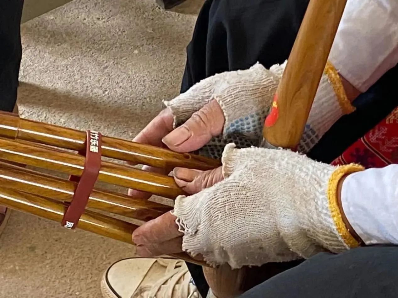 芦笙非遗传承人向实践团成员介绍芦笙乐器以及如何演奏