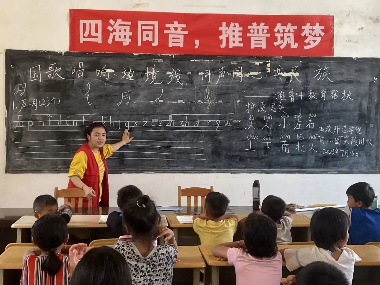 走进磨憨镇老陶村,同当地的父老乡亲一起在边境线唱响国歌,讲述聂耳和国歌的故事;在苗族聚居村寨推广普通话,开展理论宣讲,让党的创新理论飞入寻常百姓家;寻访芦笙非遗传承人,挖掘、保护和传承非物质文化遗产;为当地儿童开展课业辅导、分享大学校园学习生活,共折梦想的纸飞机,歌颂爱国诗歌,宣传教育十年的非凡成就,用习近平新时代中国特色社会主义思想启智润心……这片土地朴实且厚重,通过“夏乡筑梦”搭建各民族交往交流交融平台,铸牢中华民族共同体意识,用微弱的光穿越大山,洒落在每一个孩子的心间,照亮前进的方向,拥抱更好的未来。