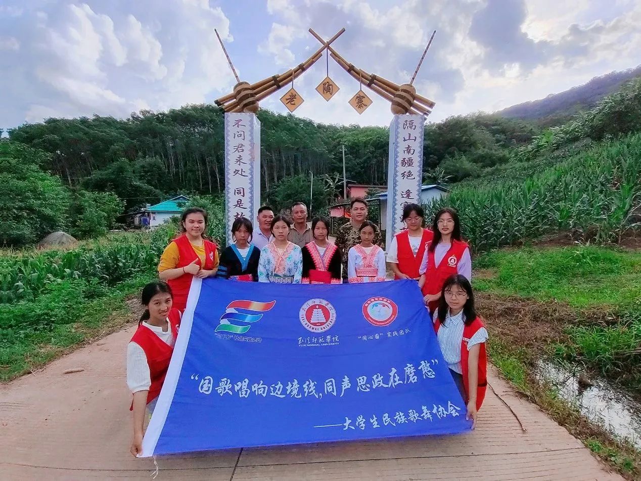 在世界面临百年未有之大变局和中华民族伟大复兴战略全局的时代背景下,巩固边境地区民族团结和谐的关系,铸牢中华民族共同体意识,推进边境地区的发展繁荣是事关国家长治久安的大事。为响应大学生暑期“三下乡”社会实践的号召,深入推进铸牢中华民族共同体意识教育,推进边境地区的发展繁荣。近日,玉溪师范学院大学生民族歌舞协会“‘同心圆’暑期实践团”前往边境线抵边村寨——磨憨镇老陶村小组开展了以“国歌唱响边境线,同声同心共民族”为主题的社会实践活动。