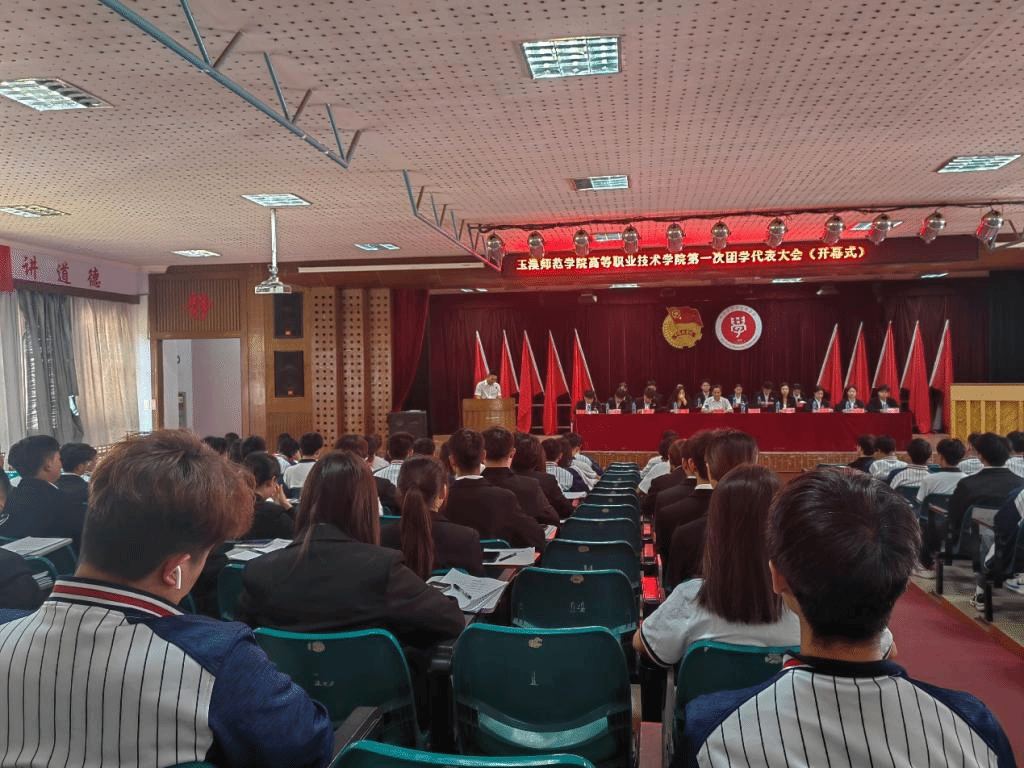 4月14日,大会开幕式在九龙校区报告厅。共青团玉溪师范学院副书记李峰宇、高等职业技术学院执行院长马瑜、辅导员肖璇、团委书记孙婷及大会代表参加会议。