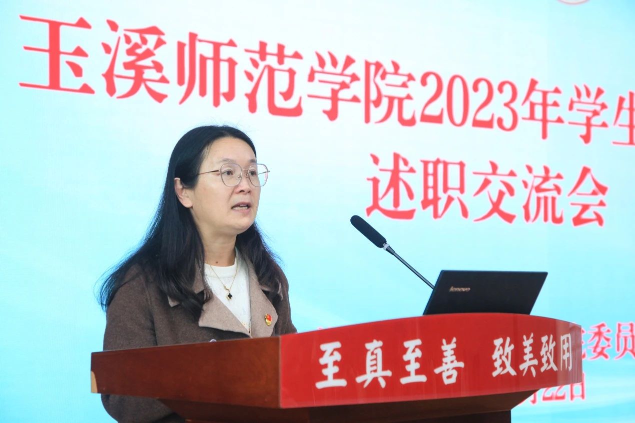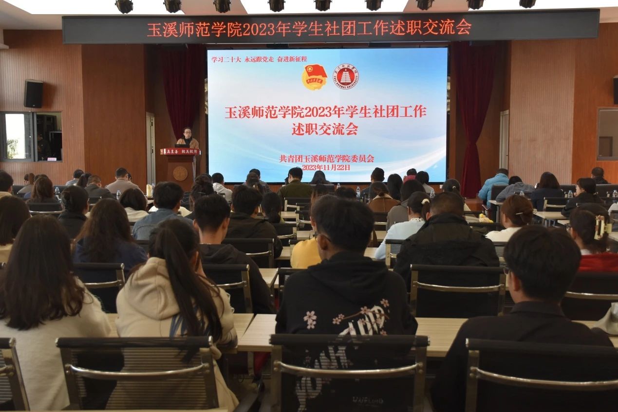 为充分发挥学生社团在学生综合素质培养和校园文化建设中的重要作用,玉溪师范学院2023年度学生社团工作述职交流会于11月22日在大学生活动中心学生会堂召开。学校党委副书记杨光,学工部、组织部、宣传部、教务处、人事处、保卫处负责人,校团委专兼职团干,各二级学院党委副书记、团委书记,社团业务指导单位为职能部门的指导教师、各社团主要负责人100余人参加会议。会议由校团委书记徐印芳主持。