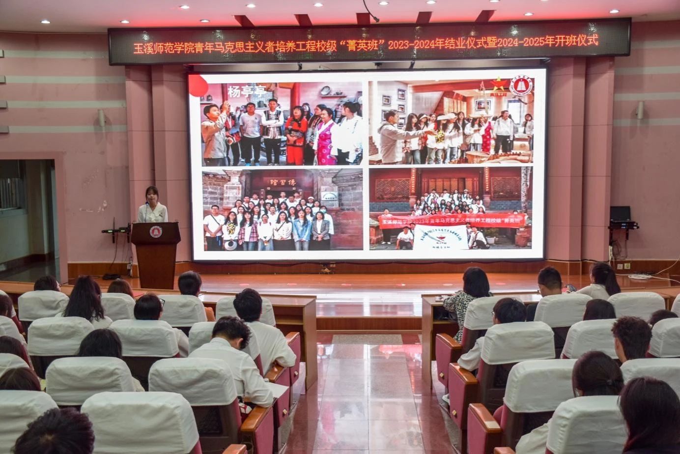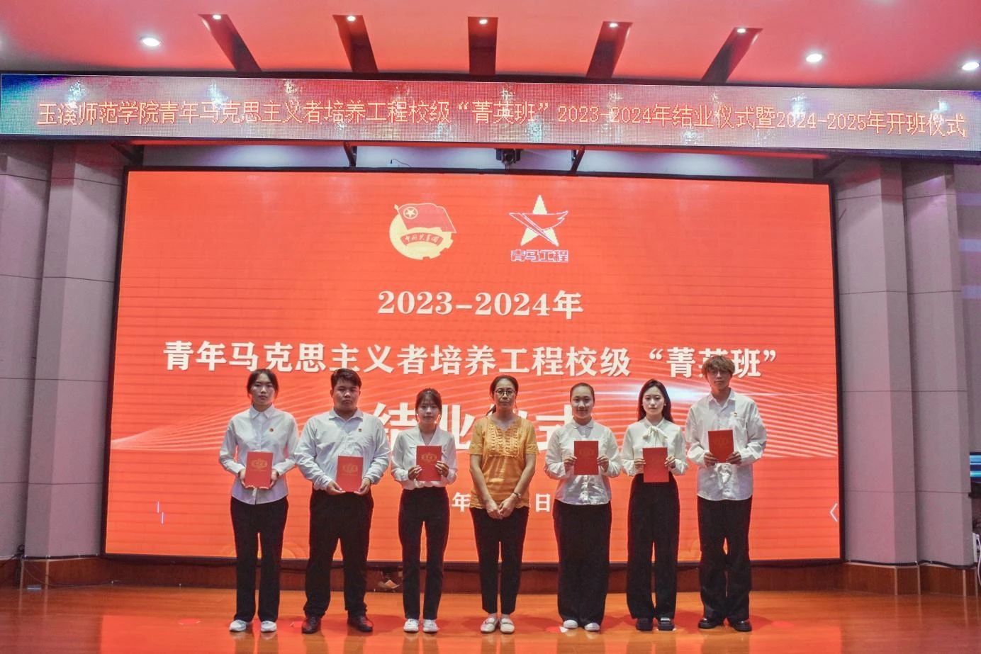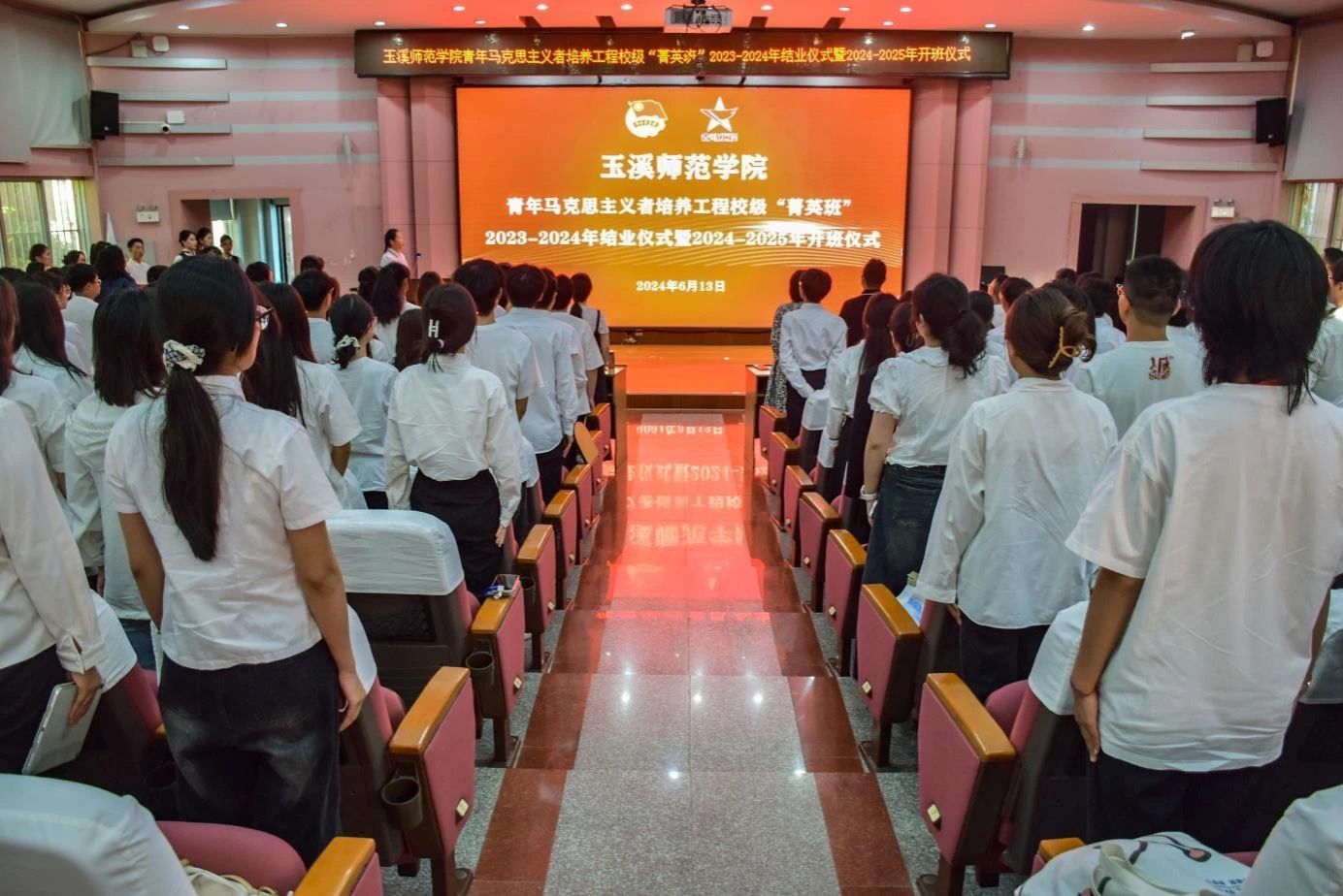为深入学习贯彻习近平新时代中国特色社会主义思想和党的二十大精神,全面贯彻习近平总书记关于青年工作的重要思想,推进学校青年马克思主义者培养工程走深走实,6月13日,玉溪师范学院青年马克思主义者培养工程校级“菁英班”2023-2024年结业暨2024-2025年开班仪式在科学讲堂举行。学校党委副书记杨光,校团委专职团干,各学院团委书记,学校青年讲师团代表,2023-2024年、2024-2025年校级“菁英班”学员,各学院“青苗班”学员代表150余人参加。
