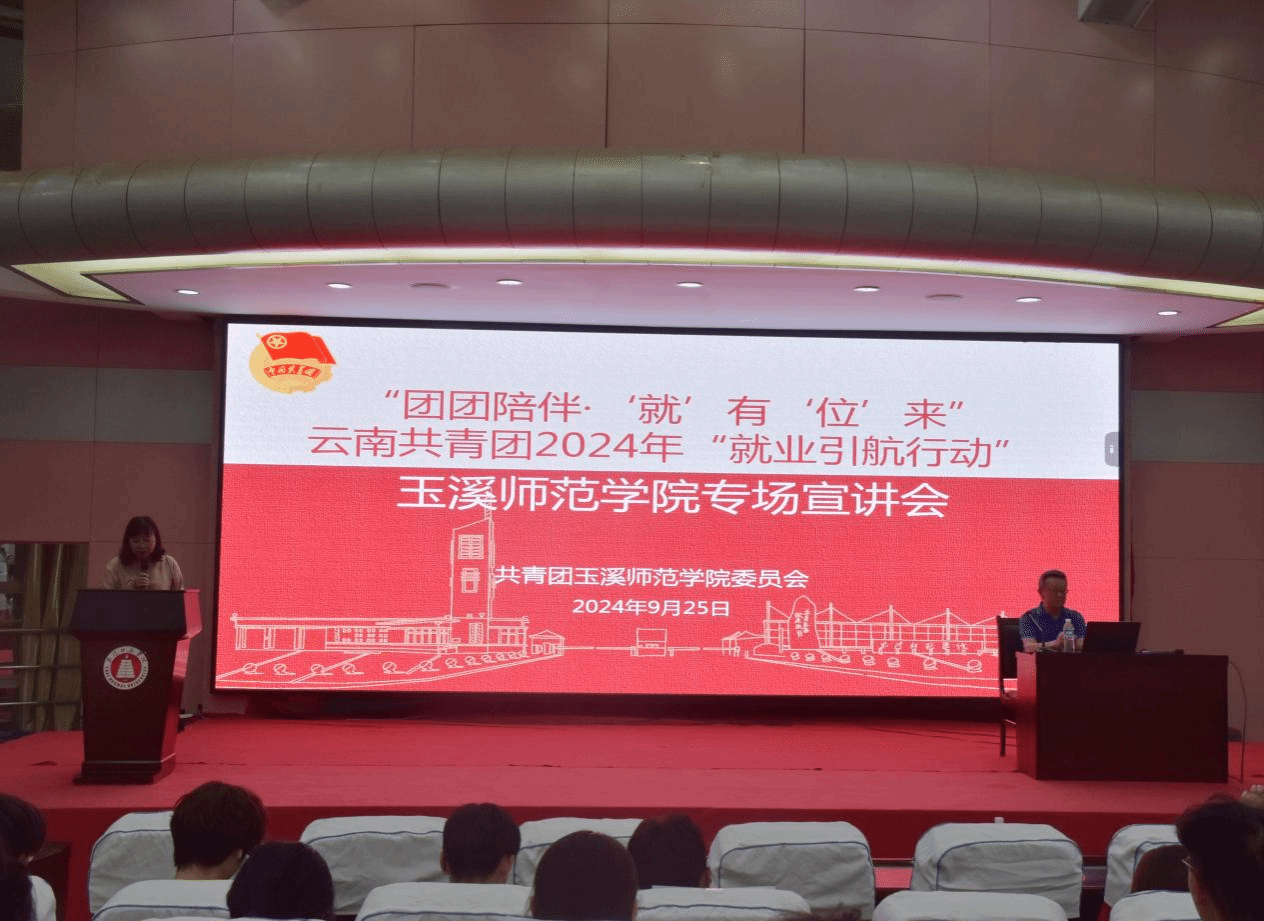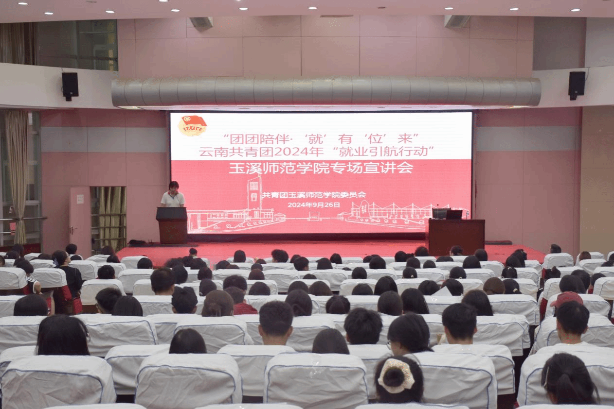为深入贯彻落实习近平总书记关于青年工作的重要思想,落实云南共青团“团团陪伴·‘就’有‘位’来”促进大中专学生就业行动的相关要求,帮助2024级新生深入认识自我,合理规划大学生活,树立正确就业观,2024年9月25-26日,由校团委、就业指导中心联合开展的“团团陪伴·‘就’有‘位’来”云南共青团2024年“就业引航行动”玉溪师范学院专场宣讲会在图书馆多元学术厅顺利举办,14个学院的2024级新生代表共900余人参加活动。