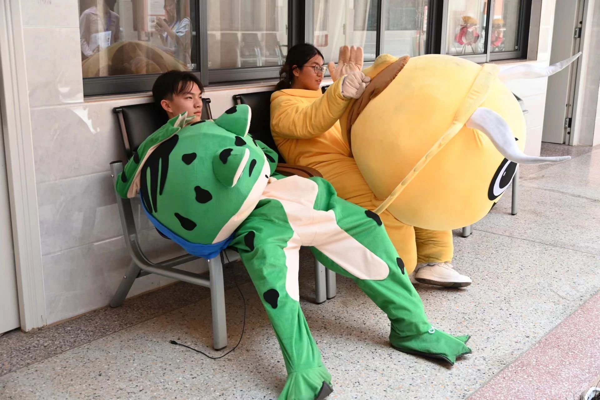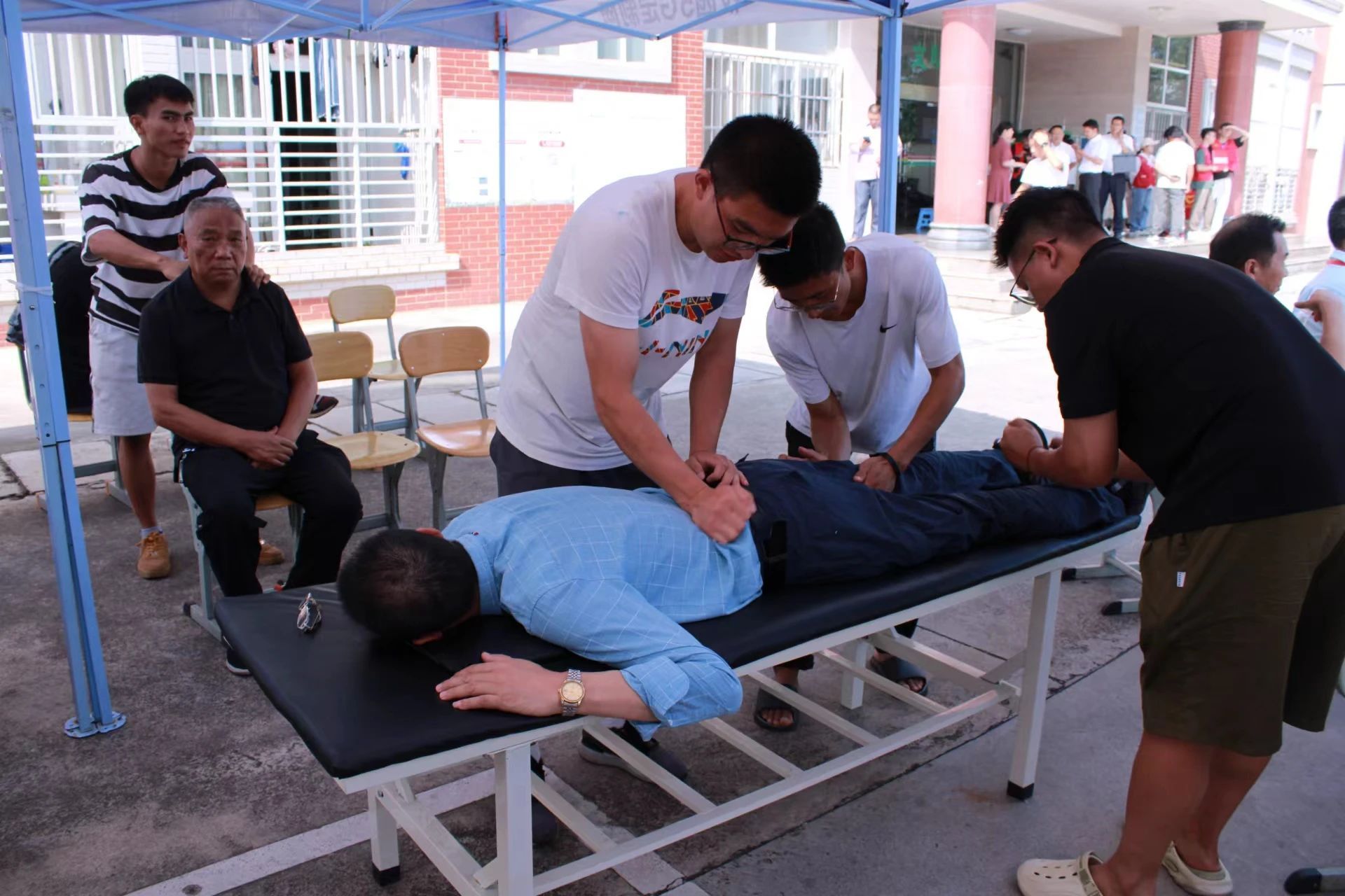 在报到点,学校贴心为家长准备了休息区,配置了椅子、饮水机等设备,同时,一群来自学校运动康复专业的志愿者,发挥专业优势,为长途跋涉而来的家长们提供筋膜放松等服务。让旅途劳顿的家长们能够缓解疲劳,感受学校温暖。