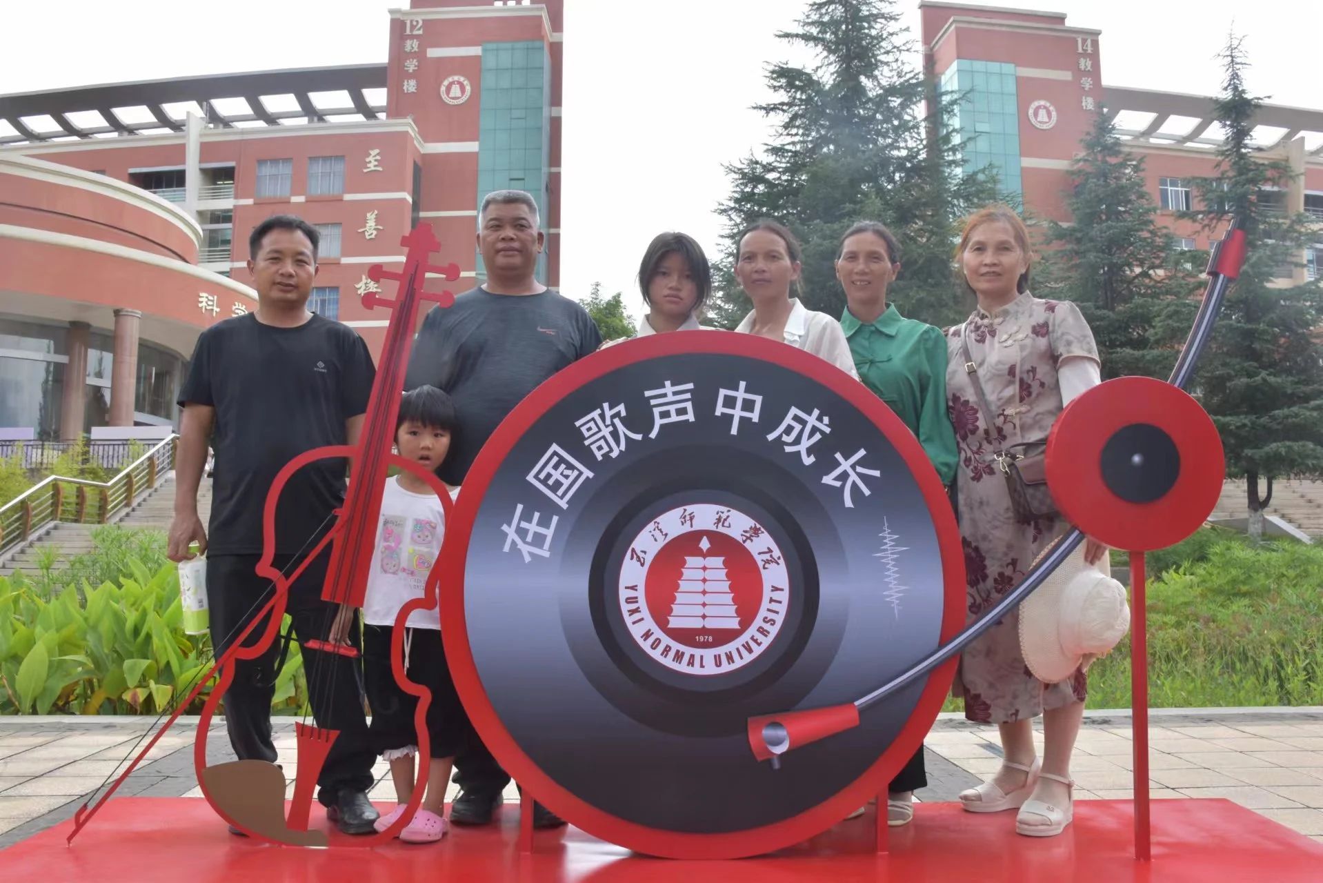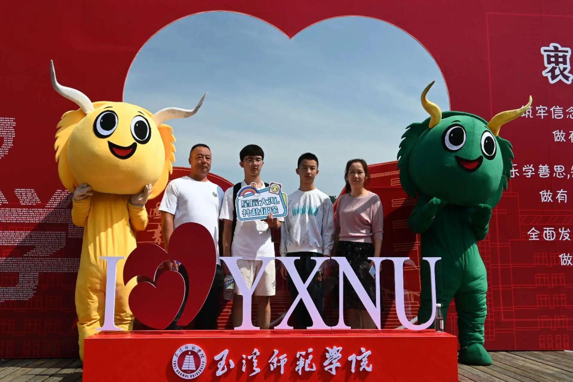 留下与家人在学校的第一张合影