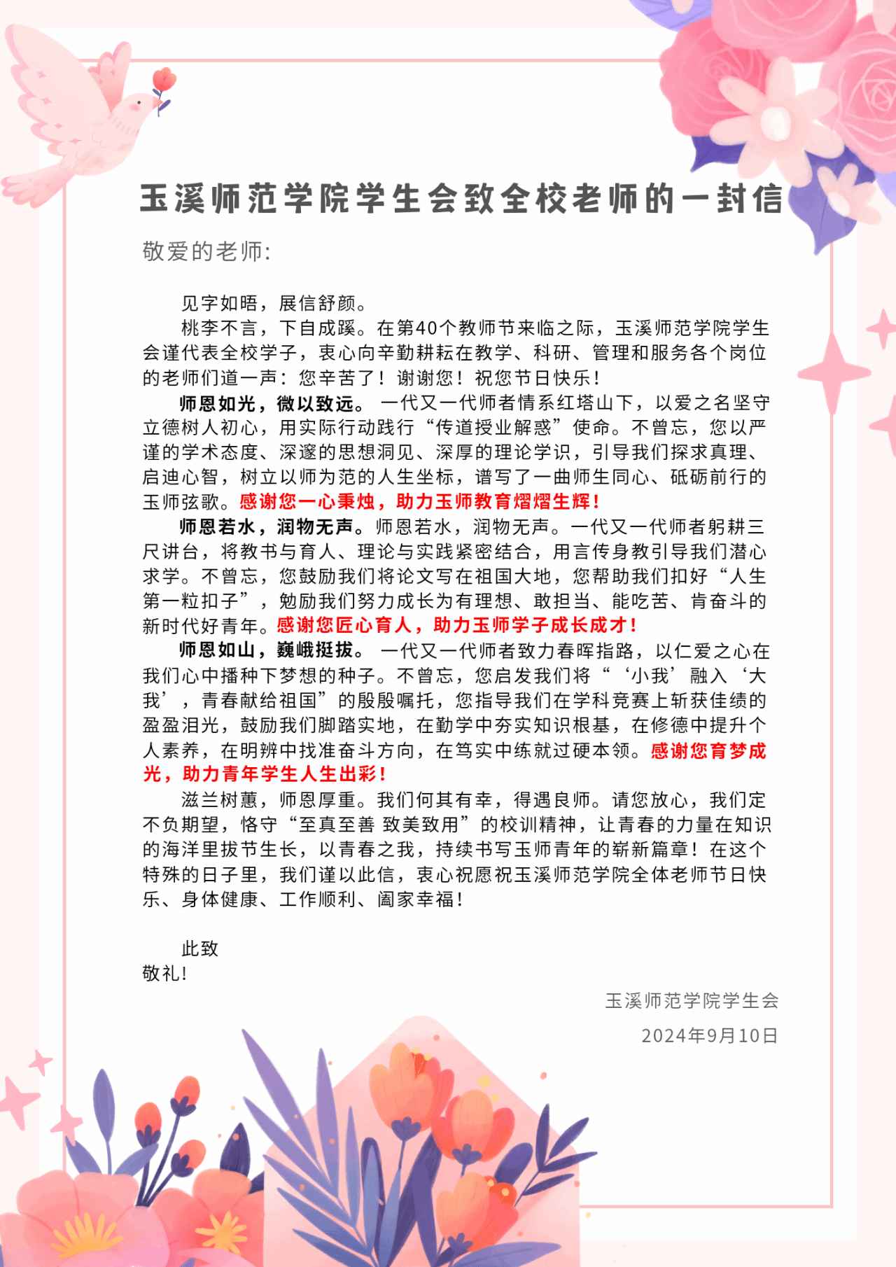 “笔端生花,纸短情长”教师节三行情书征集活动