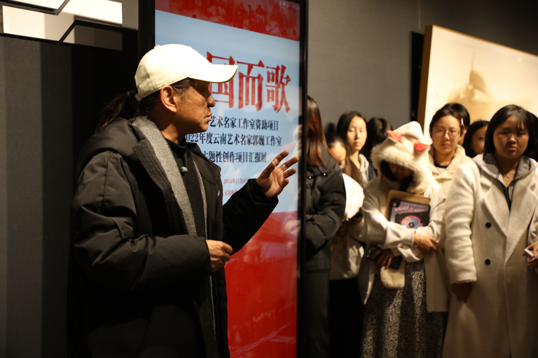 2024年11月8日上午,美术学院“大思政课”——“为国而歌”主题性创作宣讲活动在美术馆顺利举行,活动由云南省艺术名家郭巍工作室“为国而歌”主题性创作项目组负责人郭巍教授主讲,美术学院师生参加。