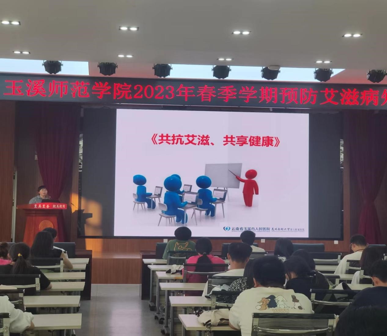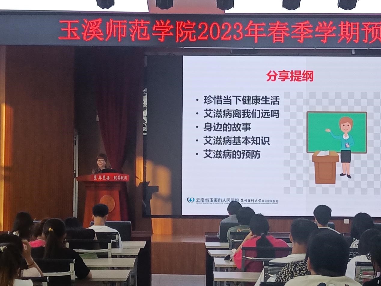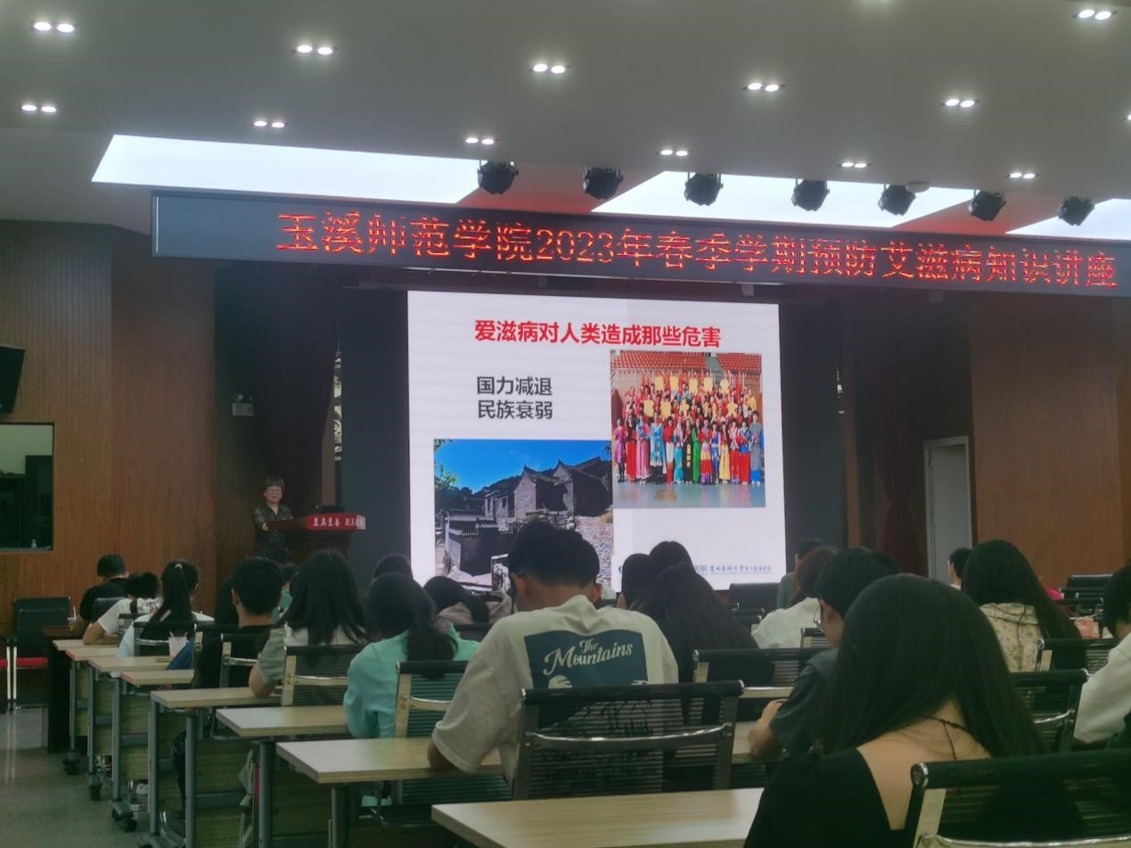 为提高同学们了解艾滋病的有关常识,增强科学预防艾滋病的意识,学会自律自爱,正视艾滋病,远离艾滋病。由学生处、校医务室、文学院红丝带爱心协会联合主办的2023年春季学期预防艾滋病知识讲座于4月25日晚19:00点在大学生活动中心学生会堂举行。各学院代表及红丝带爱心协会会员150余人参与此次活动。