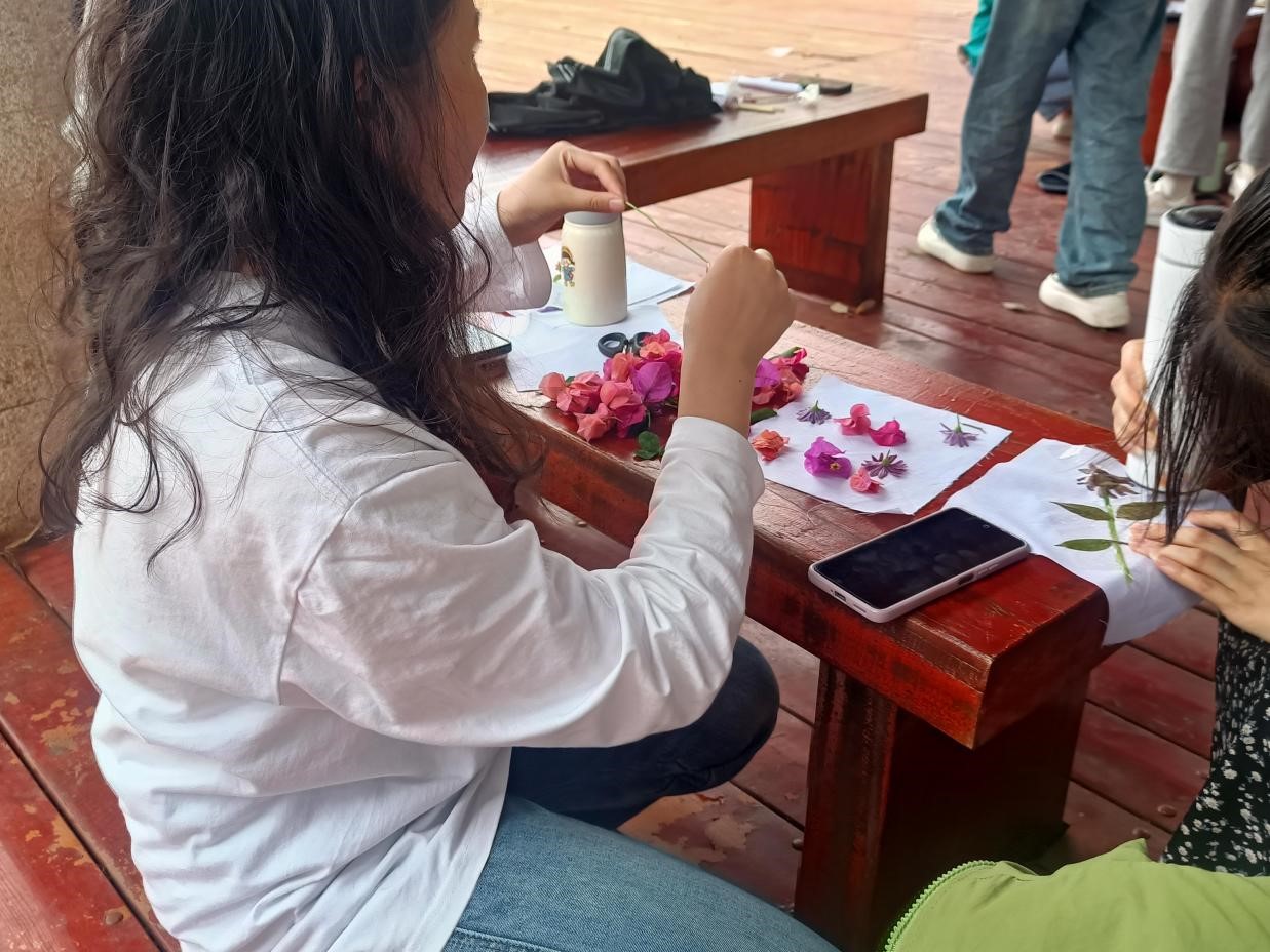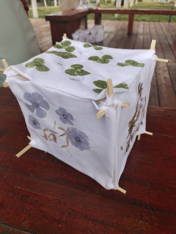 为了让同学们在繁忙的学习生活中不忘感受自然,亲身参与植物拓印灯的制作,激发同学们对生活的热爱,提高同学们对美的认识,2023年4月22日下午三点,化学生物与环境学院“自然与人”环保社团于后山凉亭举办了植物拓印灯活动。为使得本次活动顺利开展,社团成员们提前做好充足的准备,包括手帕、植物叶片、鲜花瓣、木棍等。