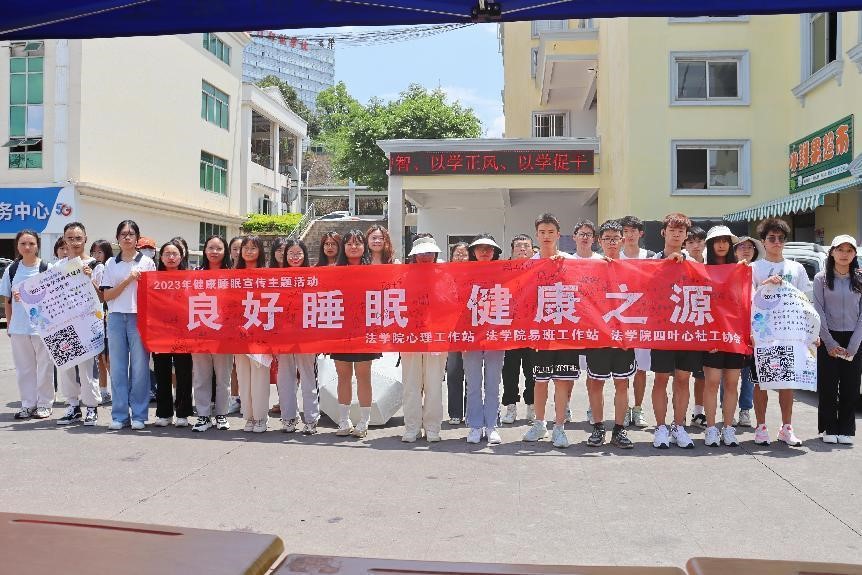 为了让同学们了解更多的睡眠健康知识,并养成一个良好的睡眠习惯。法学院于2023年5月25日上午,在品味苑门口开展了“良好睡眠,健康之源”的睡眠宣传主题活动。本次宣传主题活动分成两种方式:线下心理健康知识宣传和线上借助易班平台发布有关健康睡眠的知识竞赛。本次活动由法学院心理工作站、法学院易班工作站和法学院四叶心社工协会共同承办。