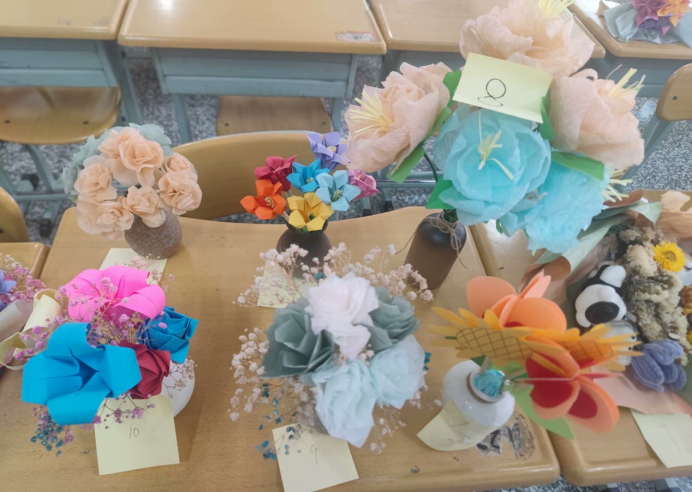 金秋九月,在这个满载收获和喜悦的季节里,迎来一年一度的教师节。为庆祝教师节的到来以及培养同学们的动手实践能力,花卉协会于2023年9月9日上午开展了以“纸间芳华,妙手生花”为主题的纸质插花大赛,传授花艺知识的同时,为同学们的生活增添了一抹亮色。