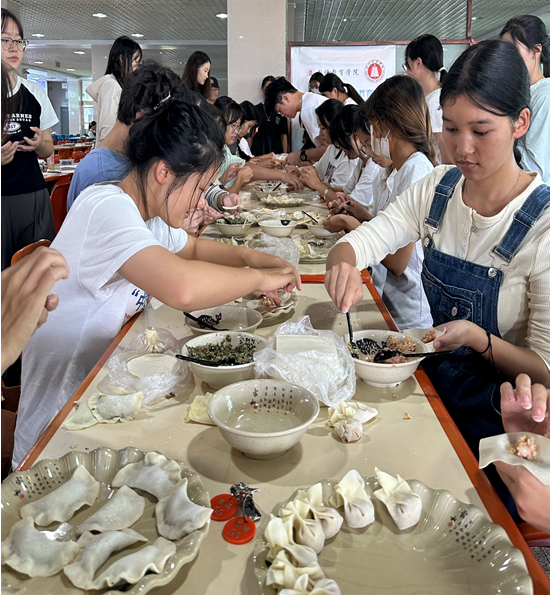 活动前,各学院同学积极报名参与。本次比赛共60人,分30个小组进行。在紧张而又激烈的比赛过程中,各个参赛小组都展现出了极高的水平。评委组对同学们制作出的饺子也给予了高度评价,并根据饺子外形、数量、摆盘情况评选出了一、二、三等奖。活动的最后,大家一起品尝了美味的饺子,体会了劳动的乐趣,大家边吃边聊,分享了自己的收获与体会。