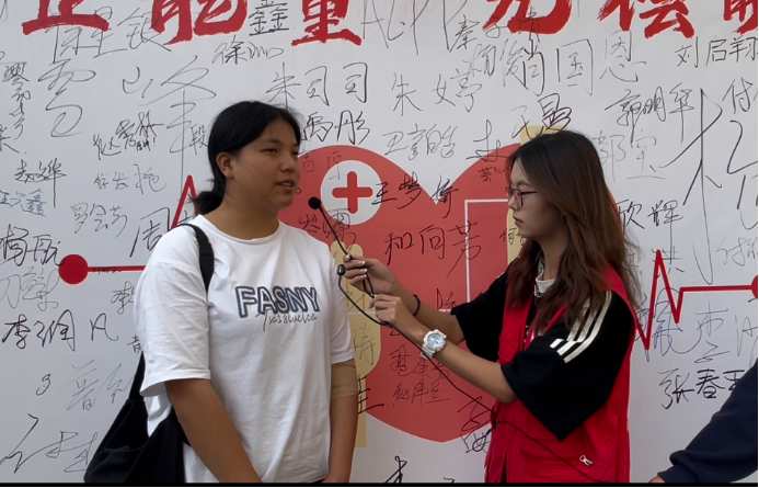 “在泰国,我们并没有献过血,看到那么多玉师小伙伴们参与到献血队伍中,我们也想亲身参与。作为外国留学生,献血能够帮助到他人,我们觉得是非常有意义的事。最初,我们是有些许恐惧针头的疼痛的,不过,献血之后觉得并不疼。我们想对前来的献血的小伙伴们说,你们可以以一种轻松的姿态来参与此次活动,因为有志愿者全程在为我们服务。这是我们迈出的勇敢的一步,也是一种爱的延续。”